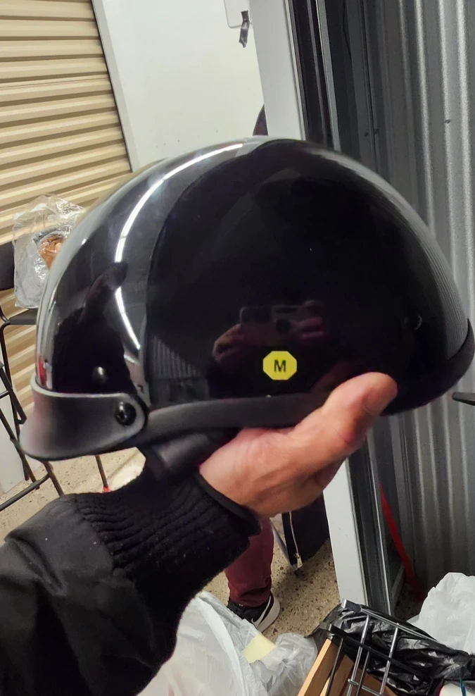 Selling a black motorcycle helmet in size medium. It has a DOT sticker, indicating it meets safety standards. Great for riders looking for a reliable helmet!