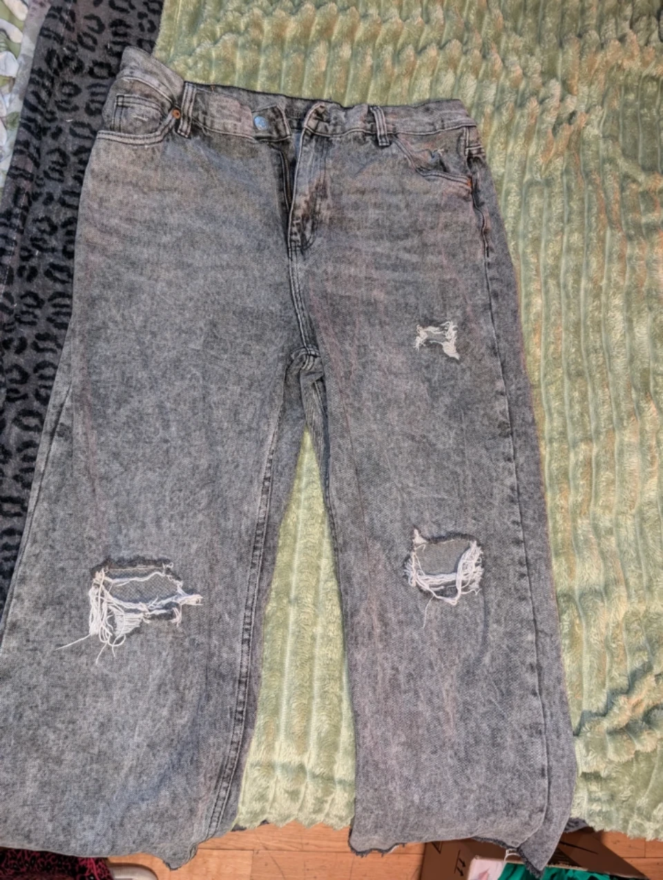 Selling a pair of Aeropostale 90's Baggy jeans in size 16. They have a distressed look with rips and are made of 100% cotton. Thick material.