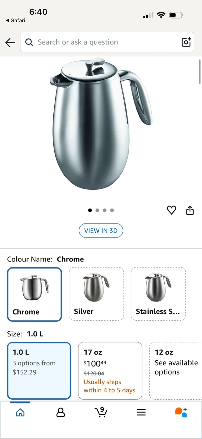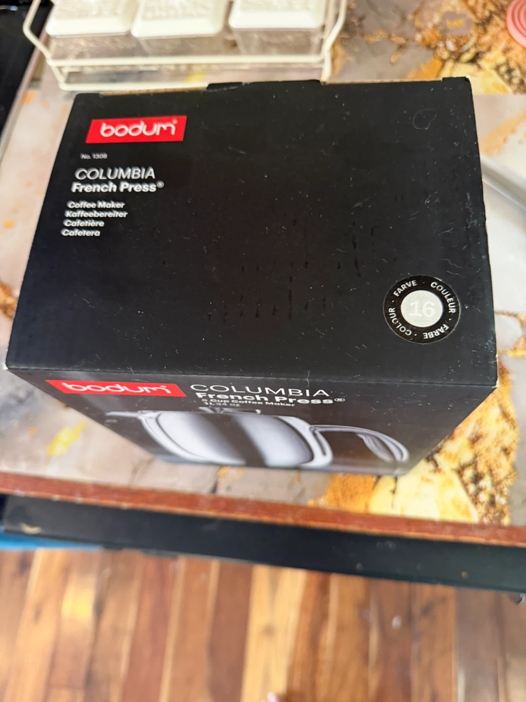 Bodum Columbia French Press Coffee Maker, 8 cups or 34 oz. Stainless steel construction. Quick and easy to brew coffee.