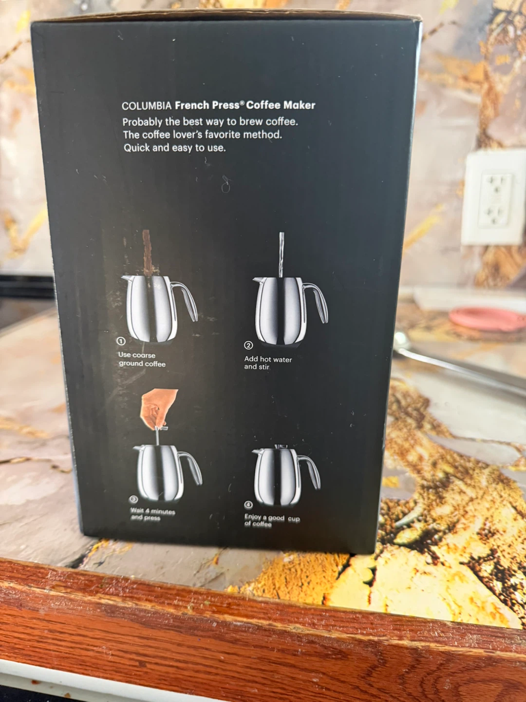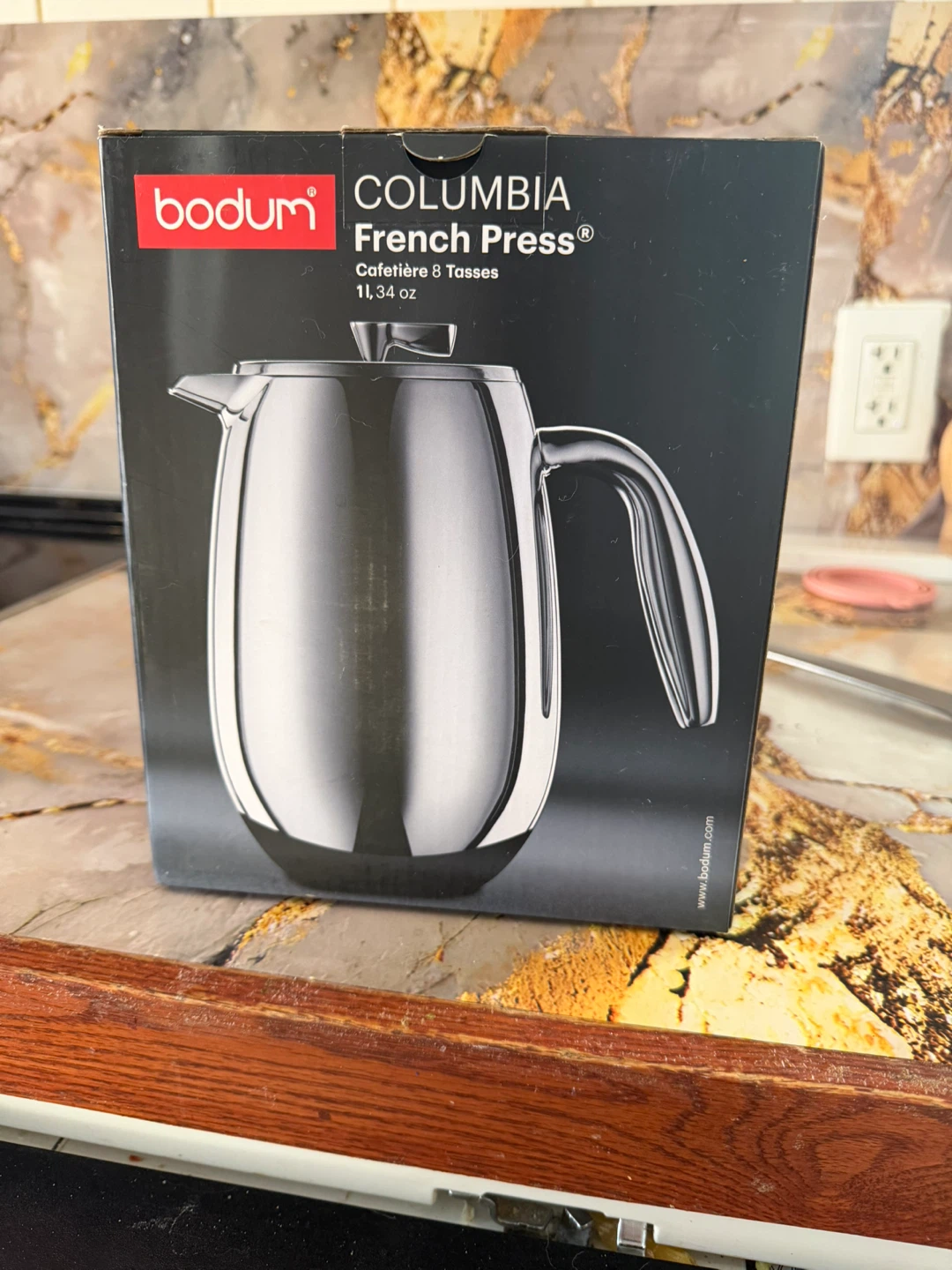 Bodum Columbia French Press Coffee Maker, 8 cups or 34 oz. Stainless steel construction. Quick and easy to brew coffee.