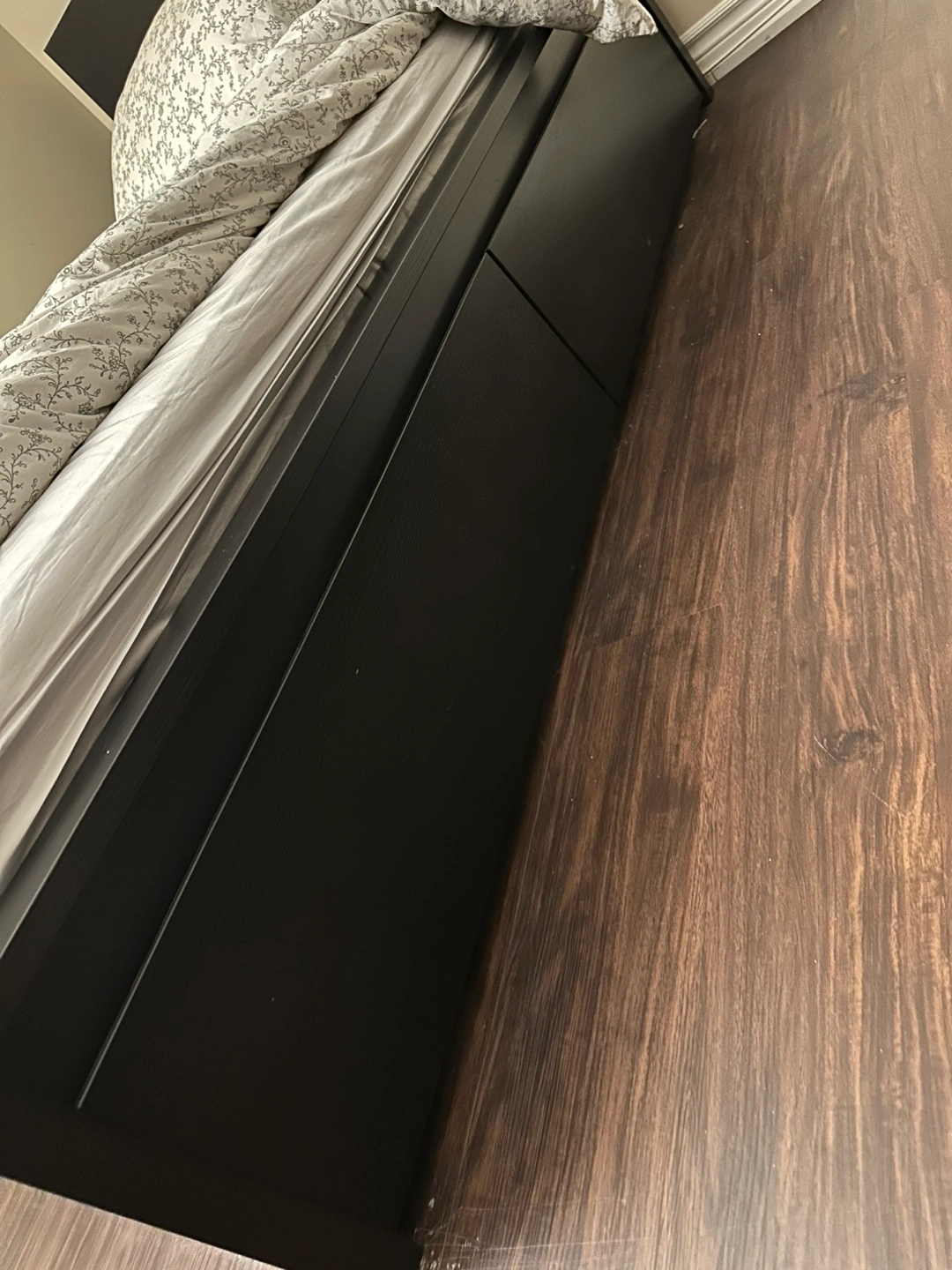 Single bed frame with two large drawers. Dark brown-black. Good condition. Easy assembly and disassembly.