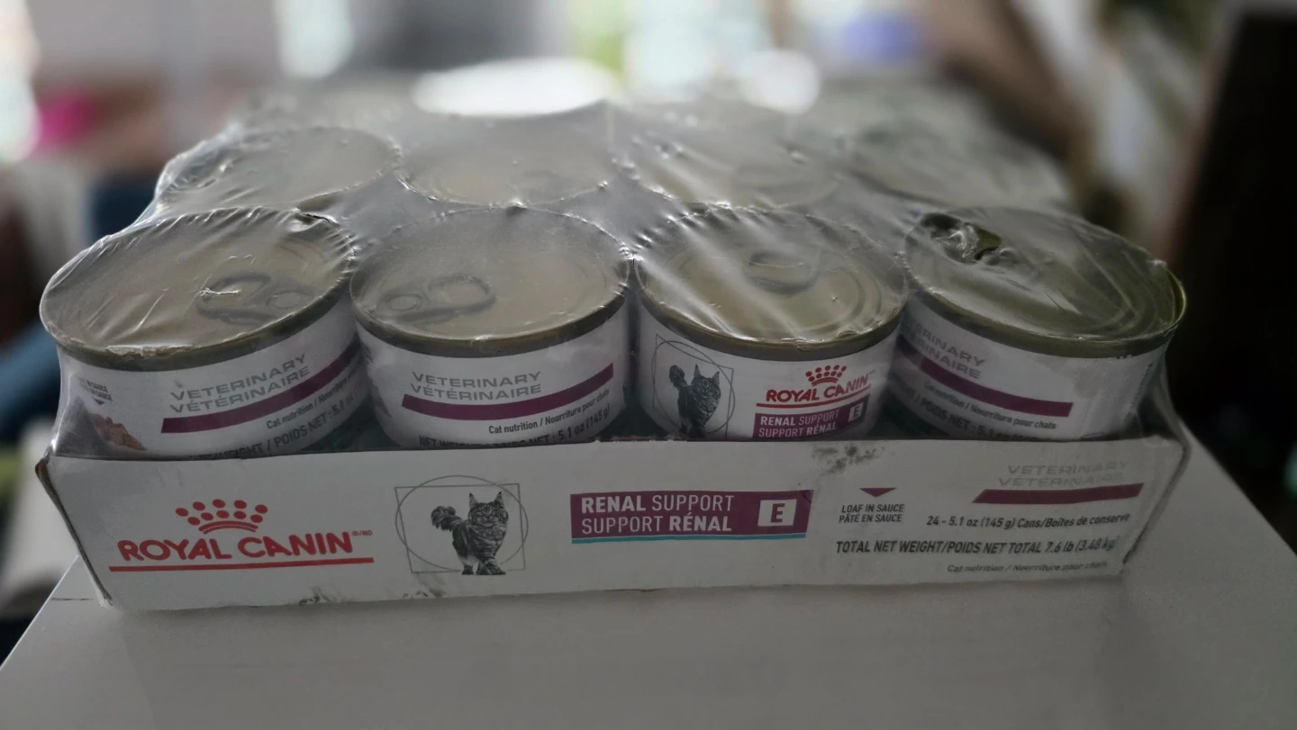 This is a case of 24 cans of Royal Canin Veterinary Renal Support cat food. It's in loaf in sauce form. Each can is 5.1 oz. I got it for my cat but he has sinced passed. It costs about $120 but just want it to go someone who needs this type of food (my cat had kidney disease).