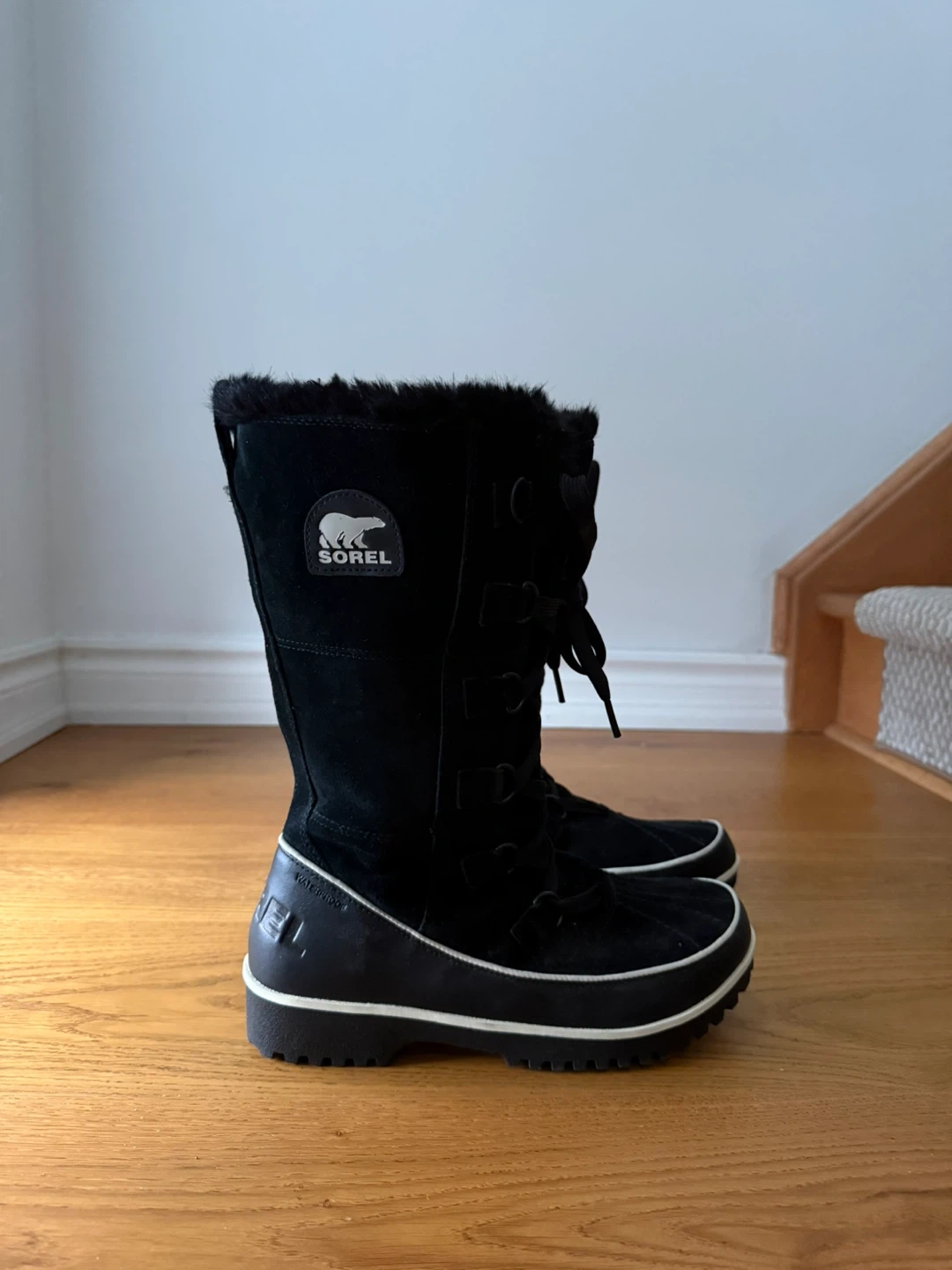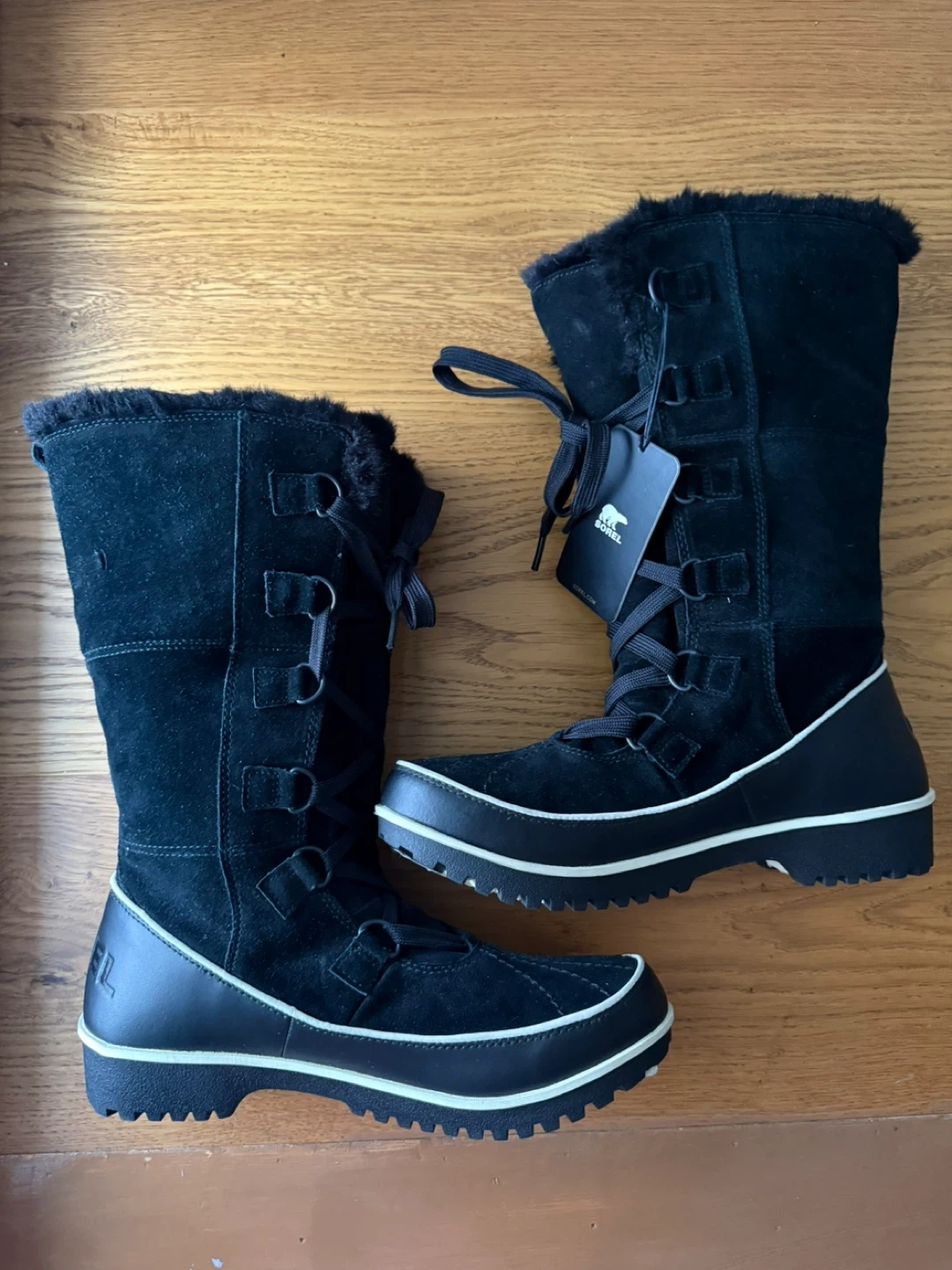 Keep your feet warm and stylish this winter with these Sorel Tofino II boots! They're in great condition and ready for snowy adventures. These boots are a sleek black colour and feature a lace-up design. Brand new with tag on it still.