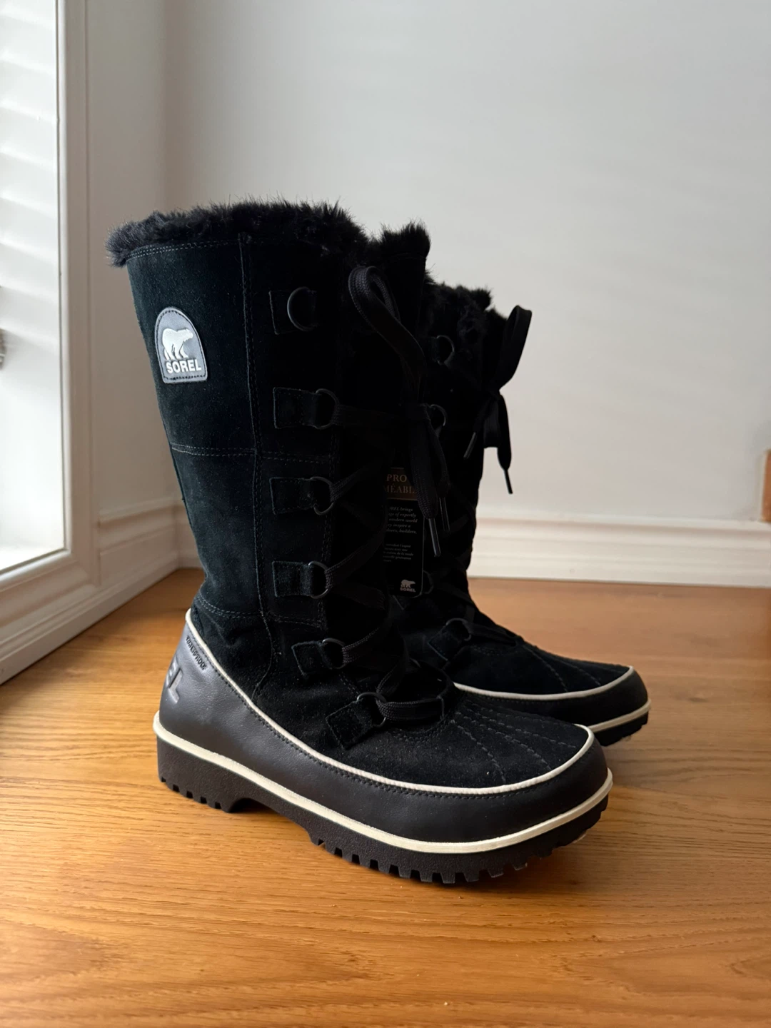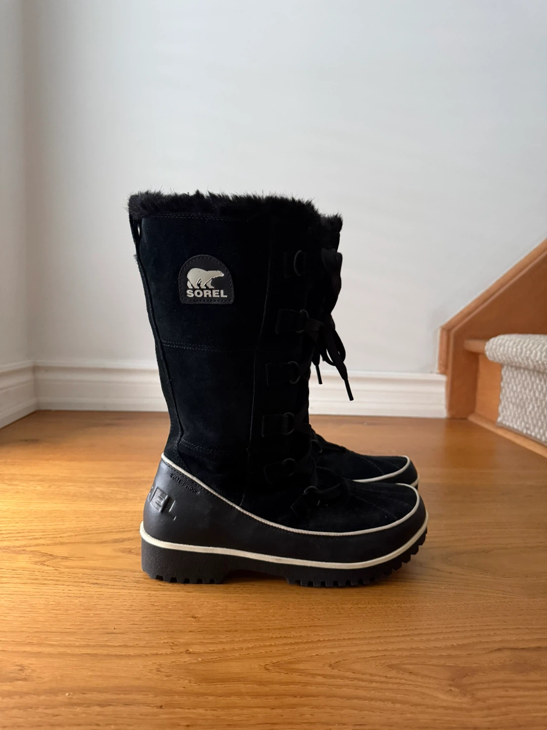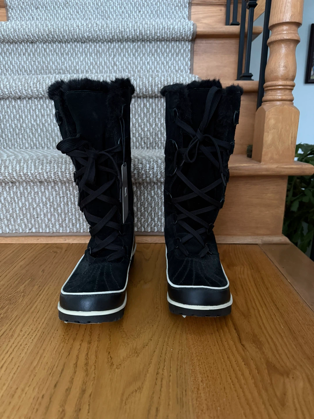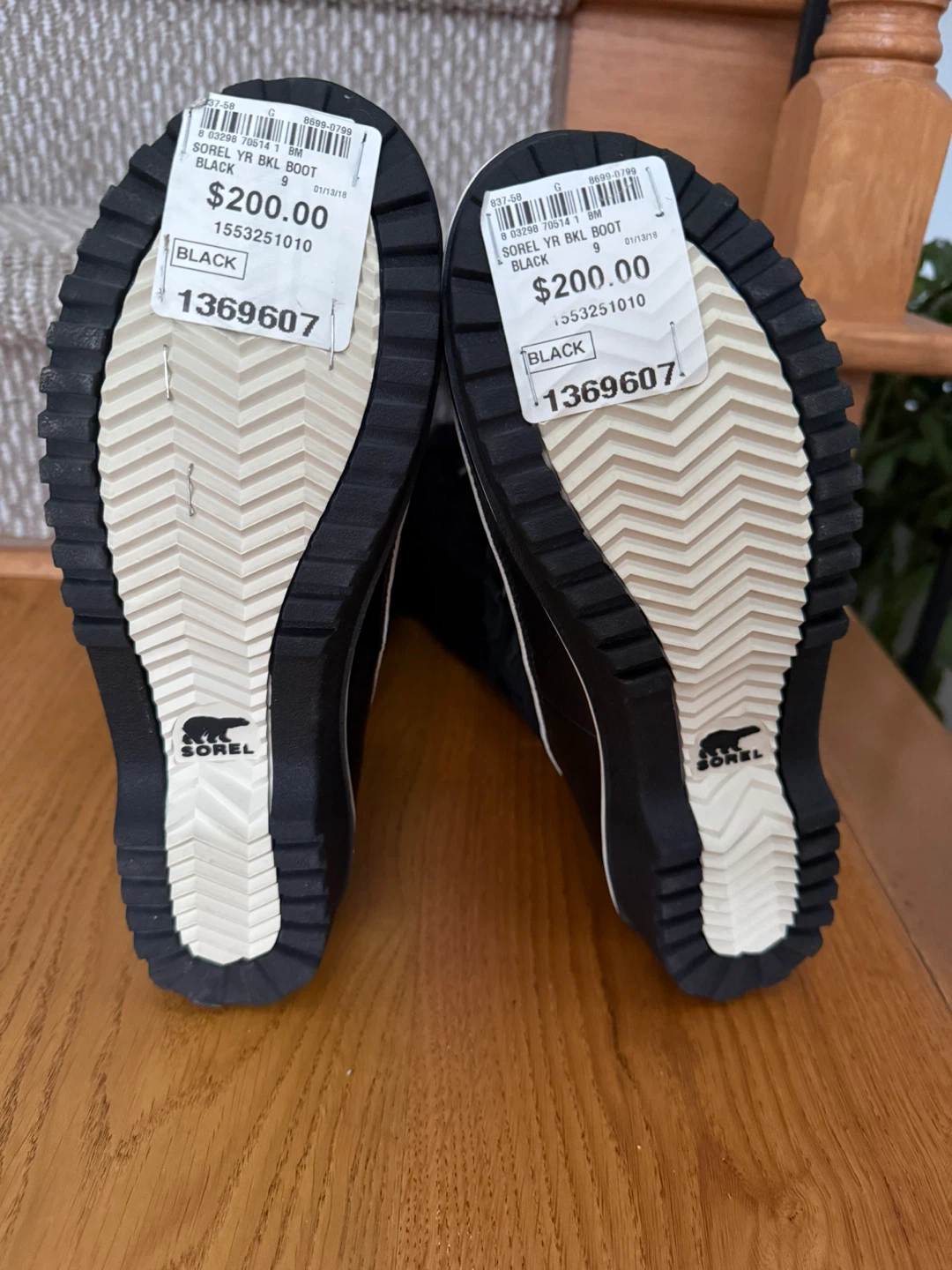 Keep your feet warm and stylish this winter with these Sorel Tofino II boots! They're in great condition and ready for snowy adventures. These boots are a sleek black colour and feature a lace-up design. Brand new with tag on it still.