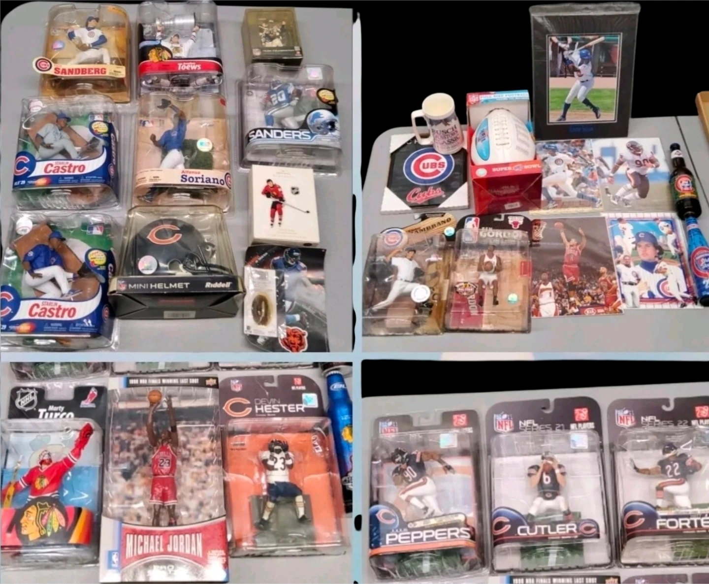 Lastly, you will get everything else you see in the pictures, The the most Amazing largest Chicago City sports collection. Including Signed basballs all in all Chicago Championships collectibles from Sealed New Figures, dozens of time period Championships Newpapers ( note, Newspapers in the bags that you see never have been out the bad, they are not the same as the ones in the pictures ) ,plus time period champs Magazines, time periad, bottles , caps, basballs, football,medals pins and everthing else exet: