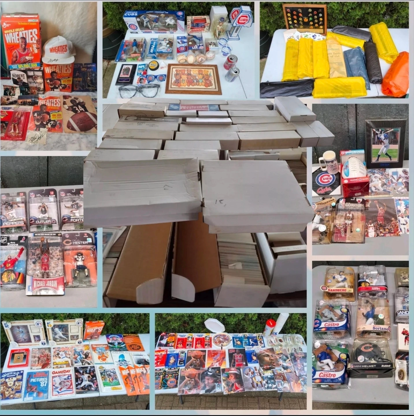 This is the most Amazing largest Chicago City sports collection Treasure that you will ever see with the main attraction is being over 15k to 20k sport cards Collection , maybe alot more ( untouched, unsearch, not picked off, )
