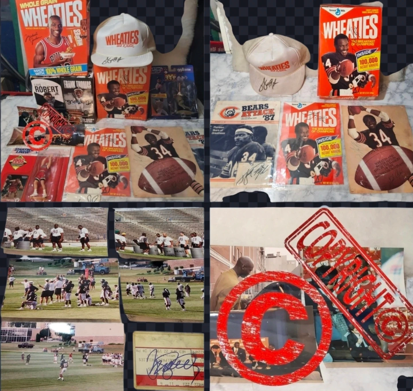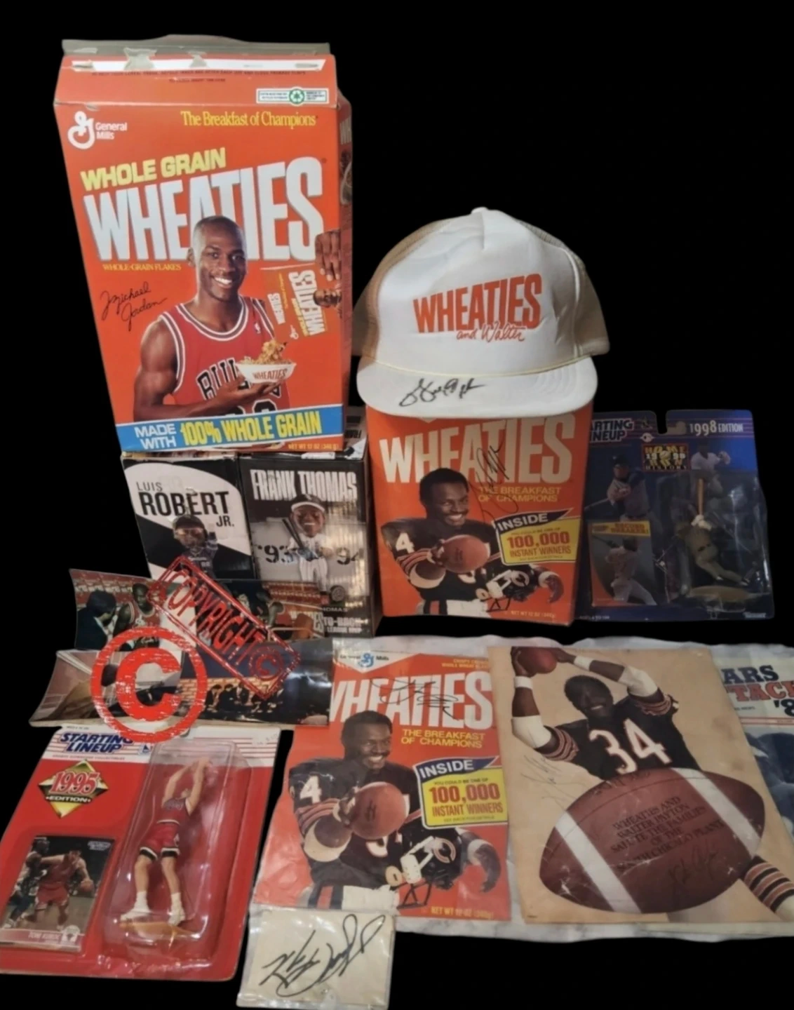 includes Wheaties signed Cereal Box 1987 Walter Payton, signed cut out, signed Poster , Signed wheeties hat and sing Paper