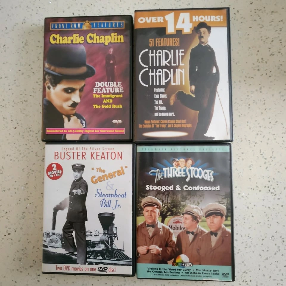 DVDs: Charlie Chaplin, Buster Keaton, Three Stooges