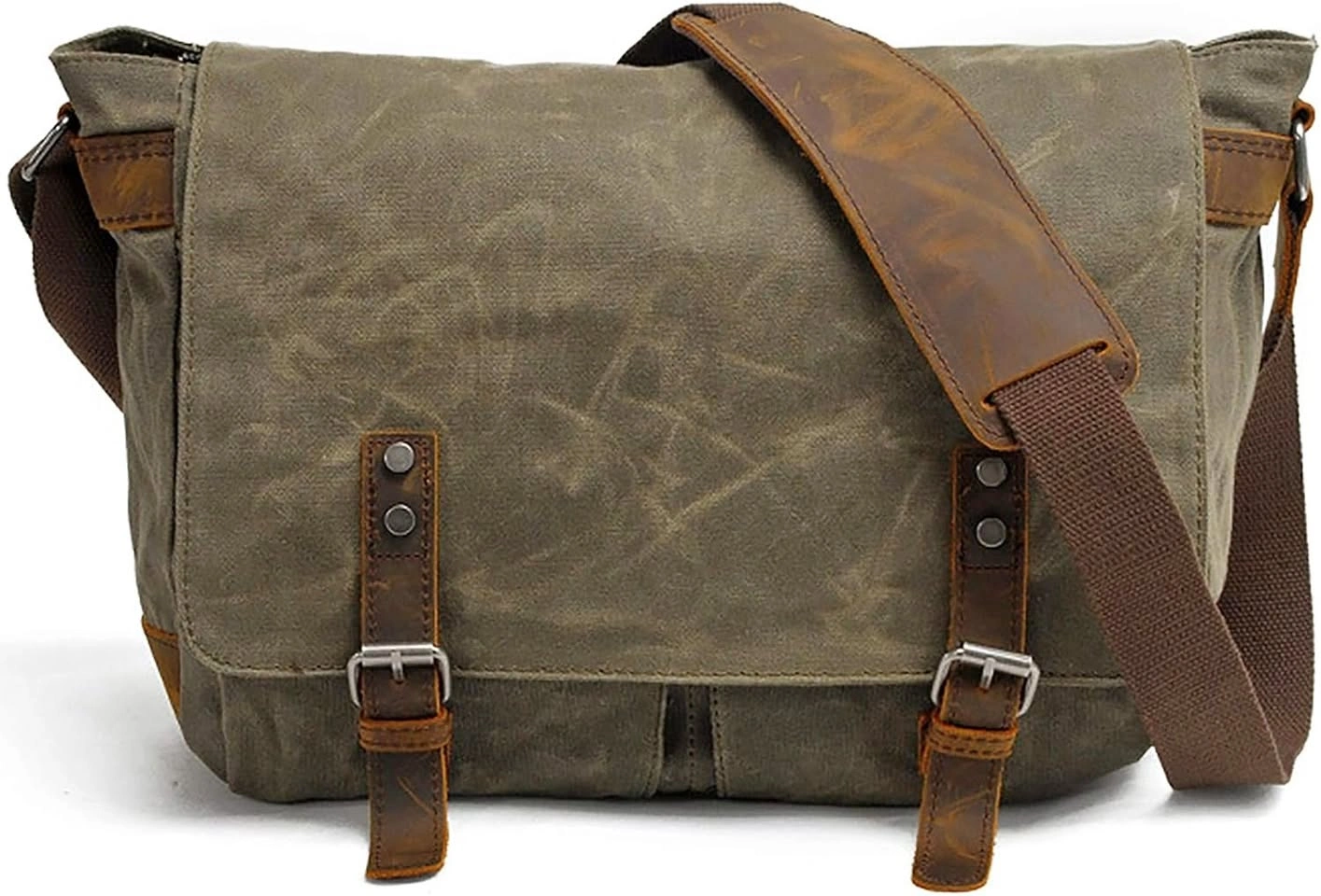 Stylish vintage-inspired canvas messenger bag with genuine leather accents.