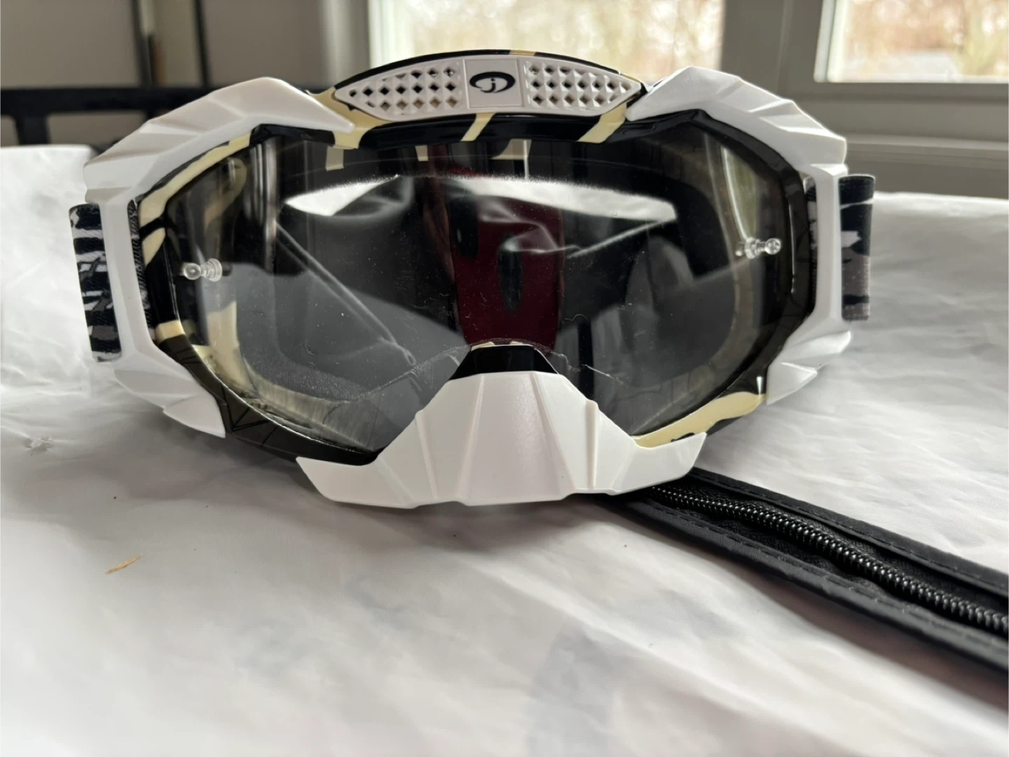 These are 6D Helmet Goggles with a camouflage strap and a protective bag. They're designed for off-road use with a durable frame and tinted lens. Includes a soft storage pouch.