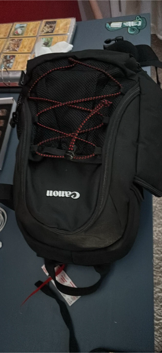 This is a Nikon DSLR camera, great for capturing memories. It comes with a lens and a Canon branded camera bag. Perfect for amateur photographers looking to upgrade their gear!