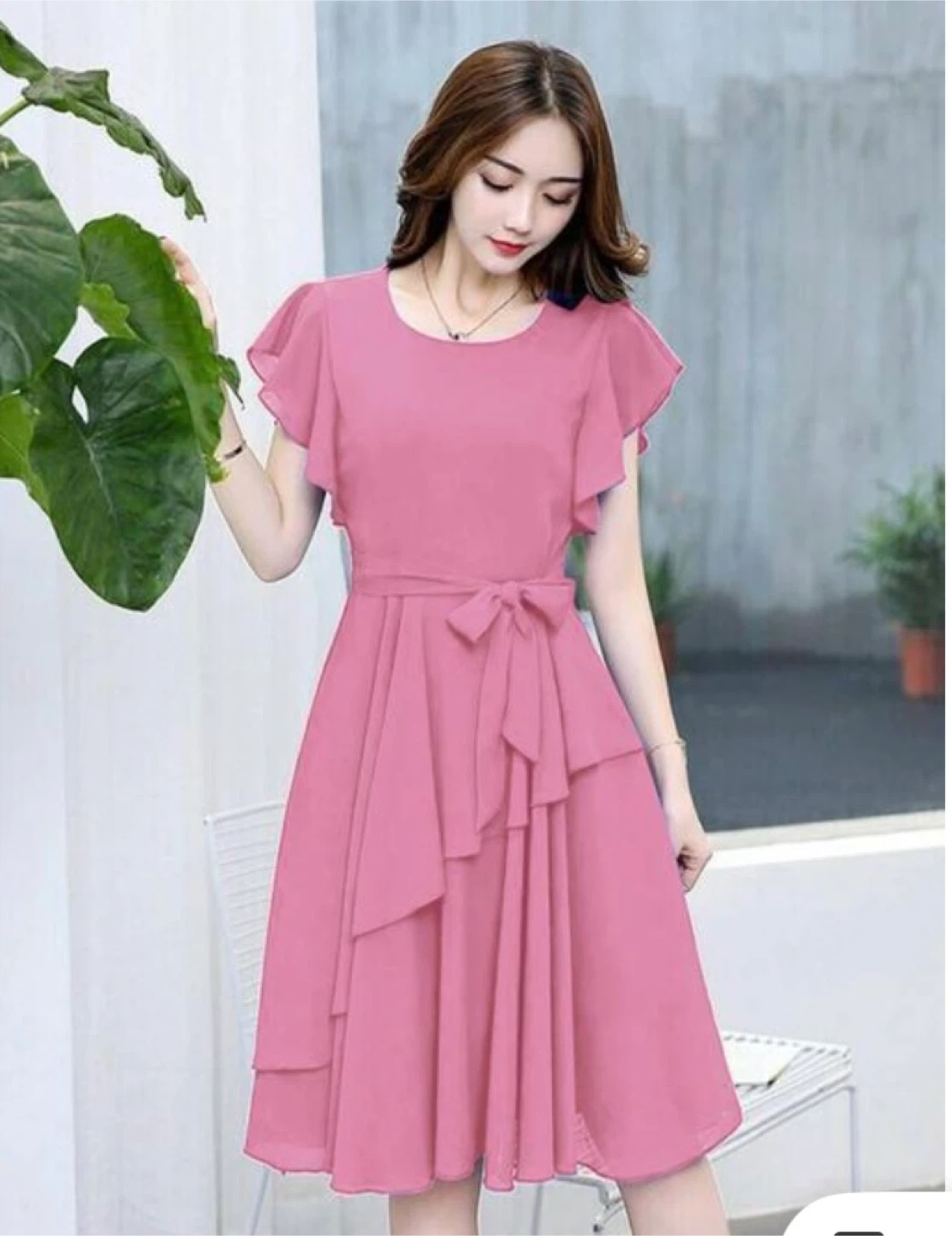 Dusty rose Chiffon Ruffle Sleeve Dress