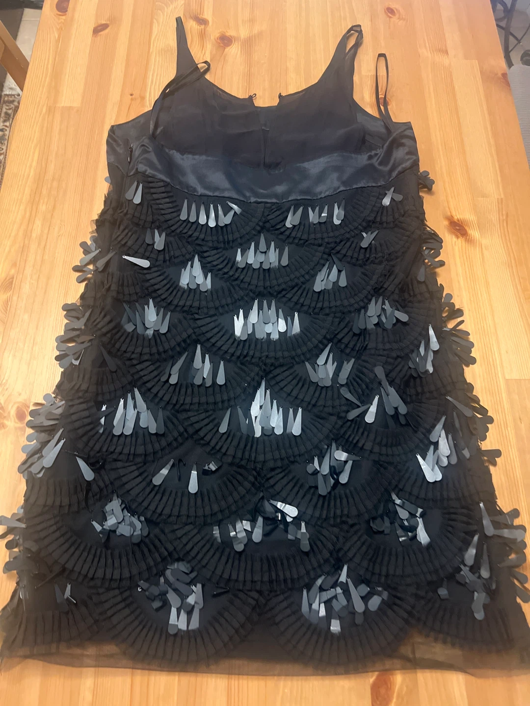 BCBGMAXAZRIA Black Fringed Dress, beaded Size M
