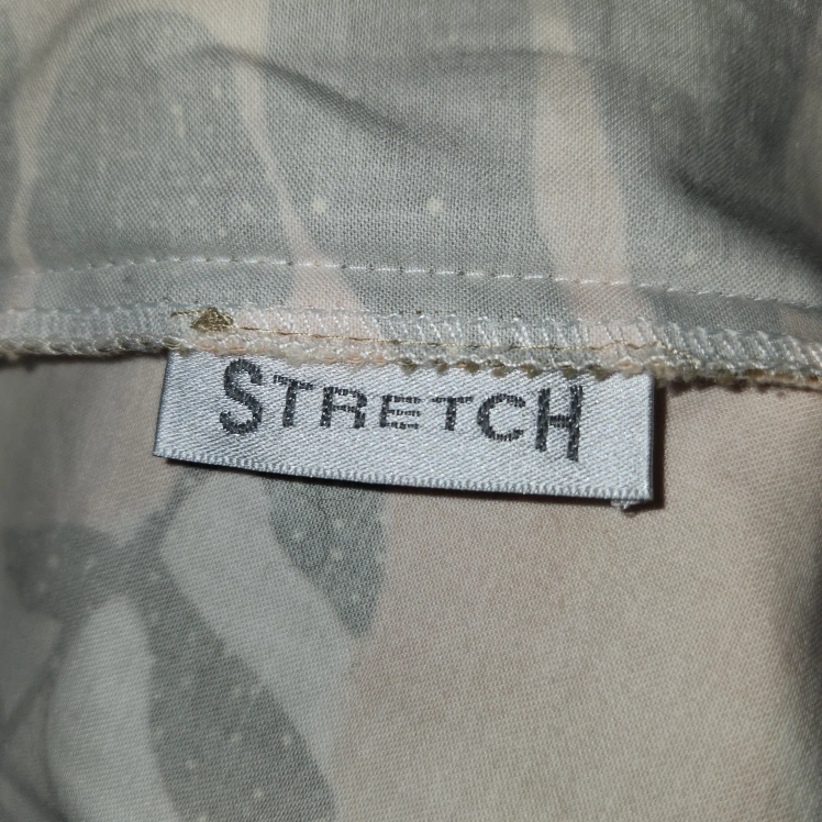 May be Cotton or Cotton blend with some Spandex. Has Stretch. All Buttons Intact.