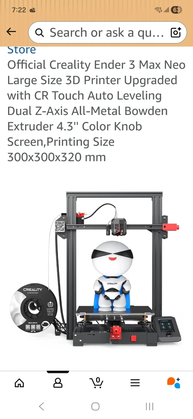 This is a Creality Ender 3 Max Neo 3D printer. It features CR Touch auto leveling and a dual Z-axis. The printer has a 4.3" color knob screen and a printing size of 300x300x320 mm. It's great for creating larger builds! Cover included.