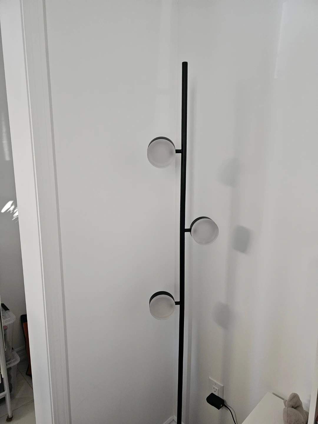 This EQ3 sleek floor lamp features a modern black design with three illuminated disc lights. It's perfect for adding ambient lighting to any room. The tall, slim profile makes it a great accent piece for corners or beside furniture.
