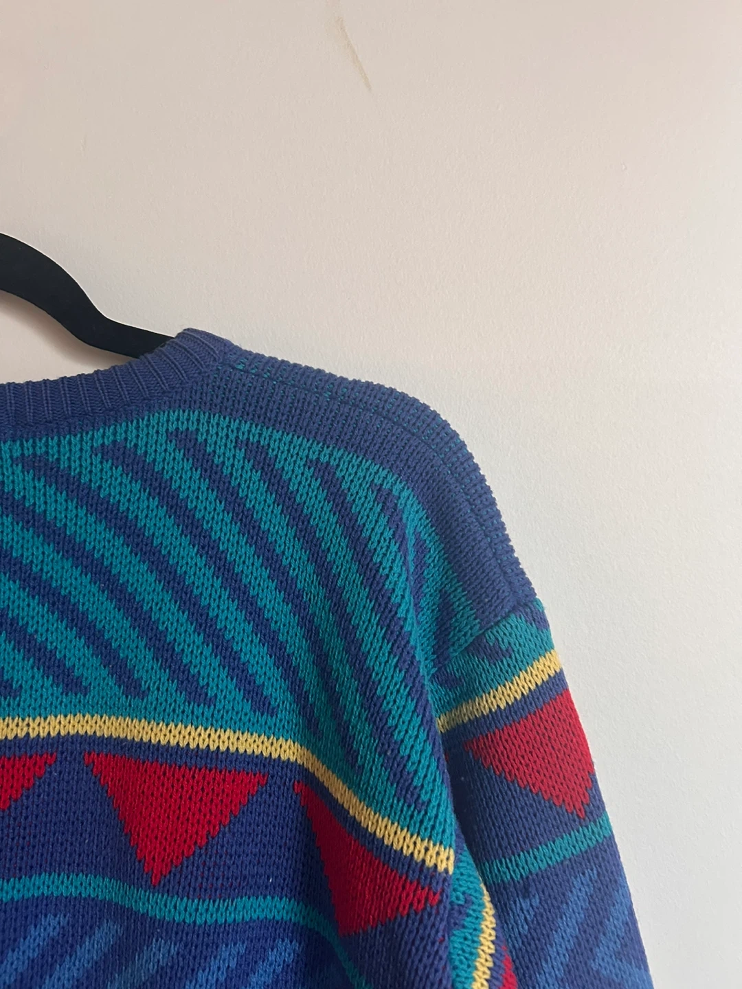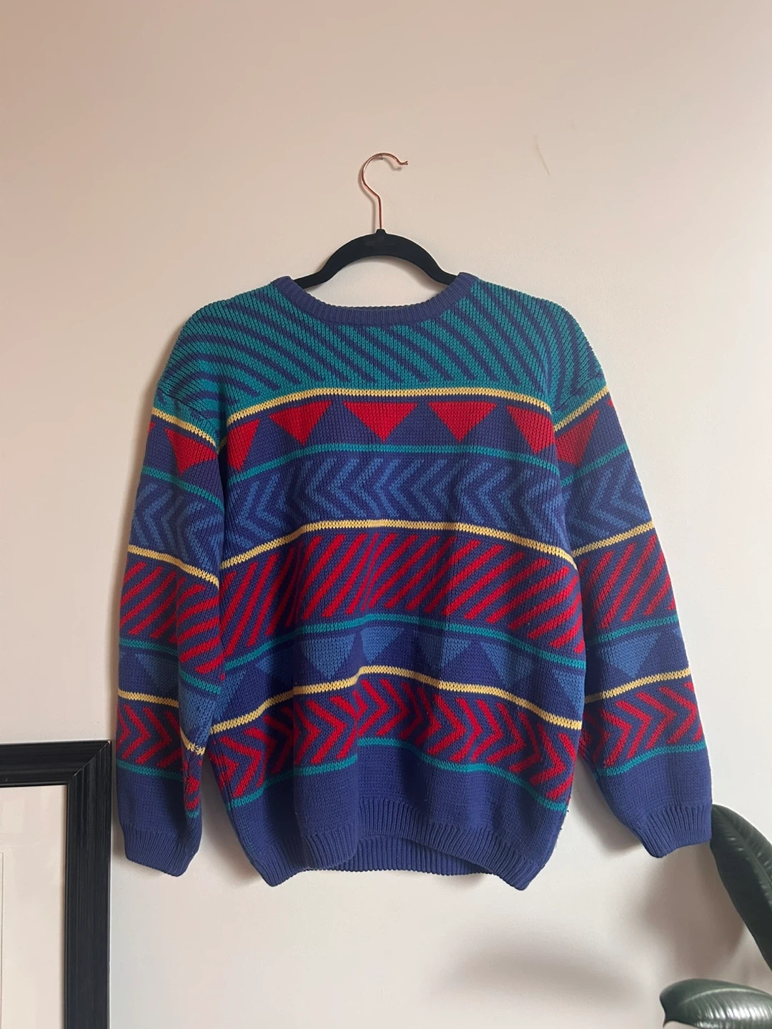 Buy & SellVintage Esprit Geometric Knit SweaterVintage Esprit Geometric Knit Sweater$25This Esprit sweater features a vibrant geometric pattern in blue, teal, red, and yellow. It's a knit sweater with a crew neck.ConditionGoodSizeMBrandEspritWHERE TO MEETBloor and DovercourtView MapSELLERverifiedDomDufferin Grove26818 reviews0 chats·1 favorites·9 viewsSEND CHAT TO SELLERHi Dom! I’m interested in your listing.Hi Dom! I’m interested in your listing.Get the Karrot app to chatSign In to chat