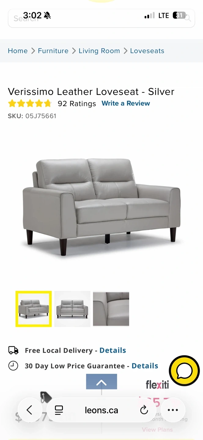 This is a Verissimo leather loveseat in silver. It's upholstered in leather and features a modern design. The loveseat has wooden legs.