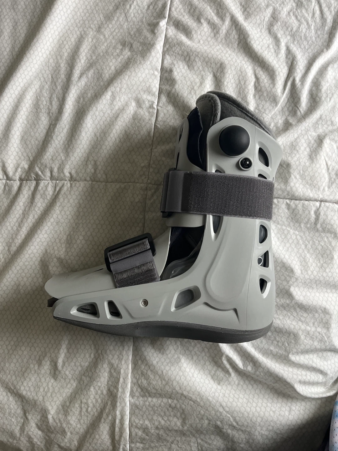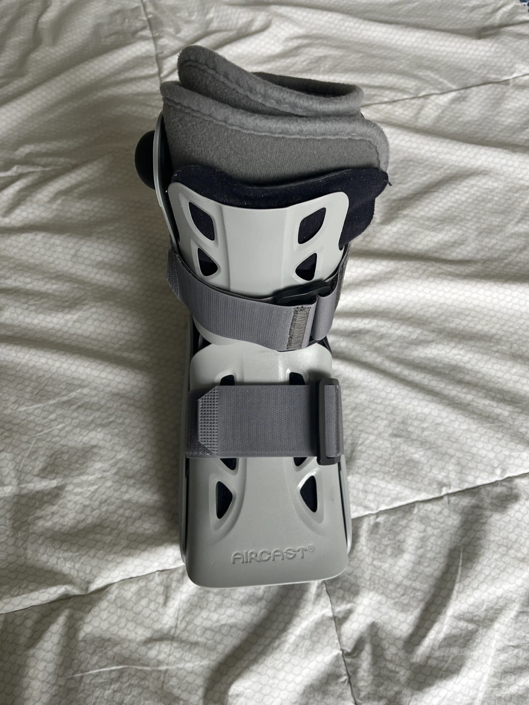 This is an Aircast walker boot, designed for ankle and foot support. It features adjustable straps for a secure fit and a durable shell. This boot is useful for recovery after injuries or surgery. Right foot
