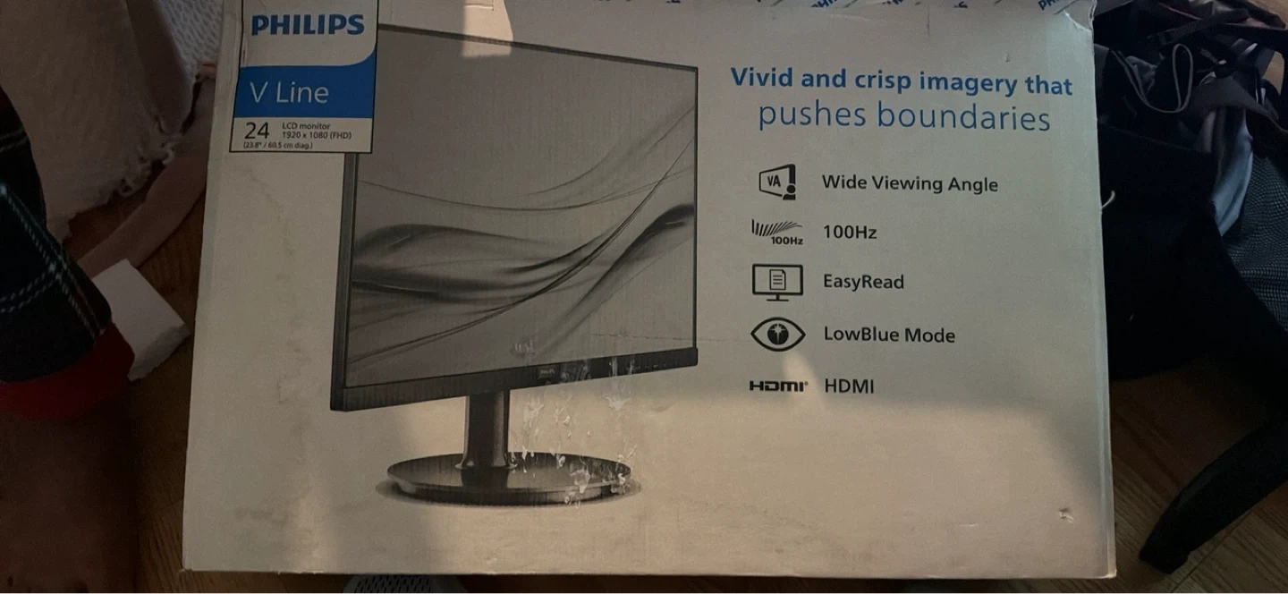 This Philips V Line monitor offers vivid and crisp imagery. It's a 24-inch LCD display with a 100Hz refresh rate. The monitor includes HDMI connectivity and a low blue light mode for eye comfort. It's great for everyday tasks and entertainment! . tengo 3 monitores