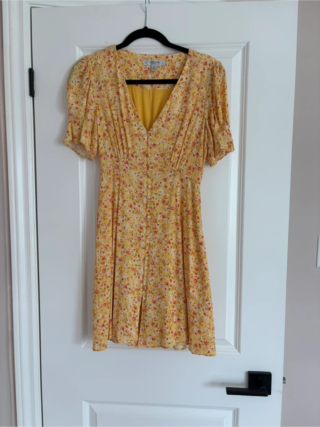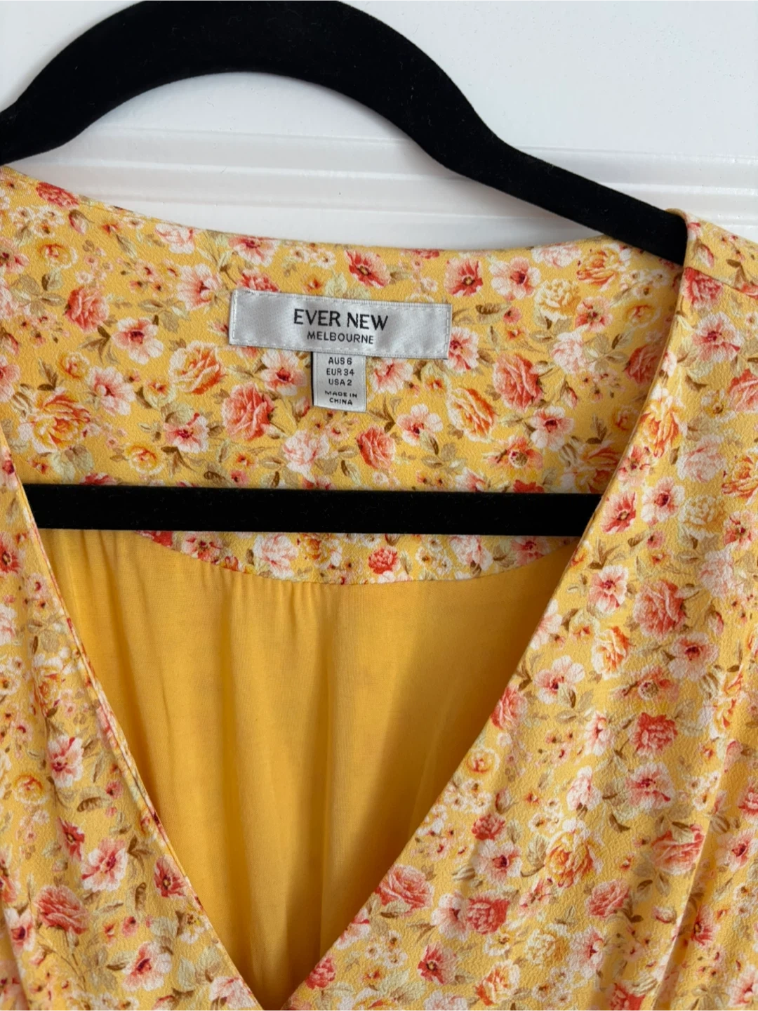 This is an Ever New Melbourne floral print dress. It's a yellow dress with a floral pattern. Size is AU 10, US 6, UK 10.