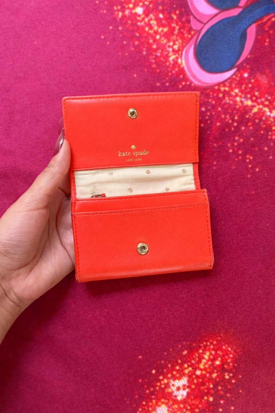 Buy & SellKate Spade Bow Terrace Darla Maraschino WalletKate Spade Bow Terrace Darla Maraschino Wallet$28Authentic Kate Spade small wallet in beautiful bright orange color with gold bow detail.ConditionLike newWHERE TO MEETM9RView MapSELLERverifiedPoojaThe Westway681 review0 chats·1 favorites·8 viewsSEND CHAT TO SELLERHi Pooja! I’m interested in your listing.Hi Pooja! I’m interested in your listing.Get the Karrot app to chatSign In to chat