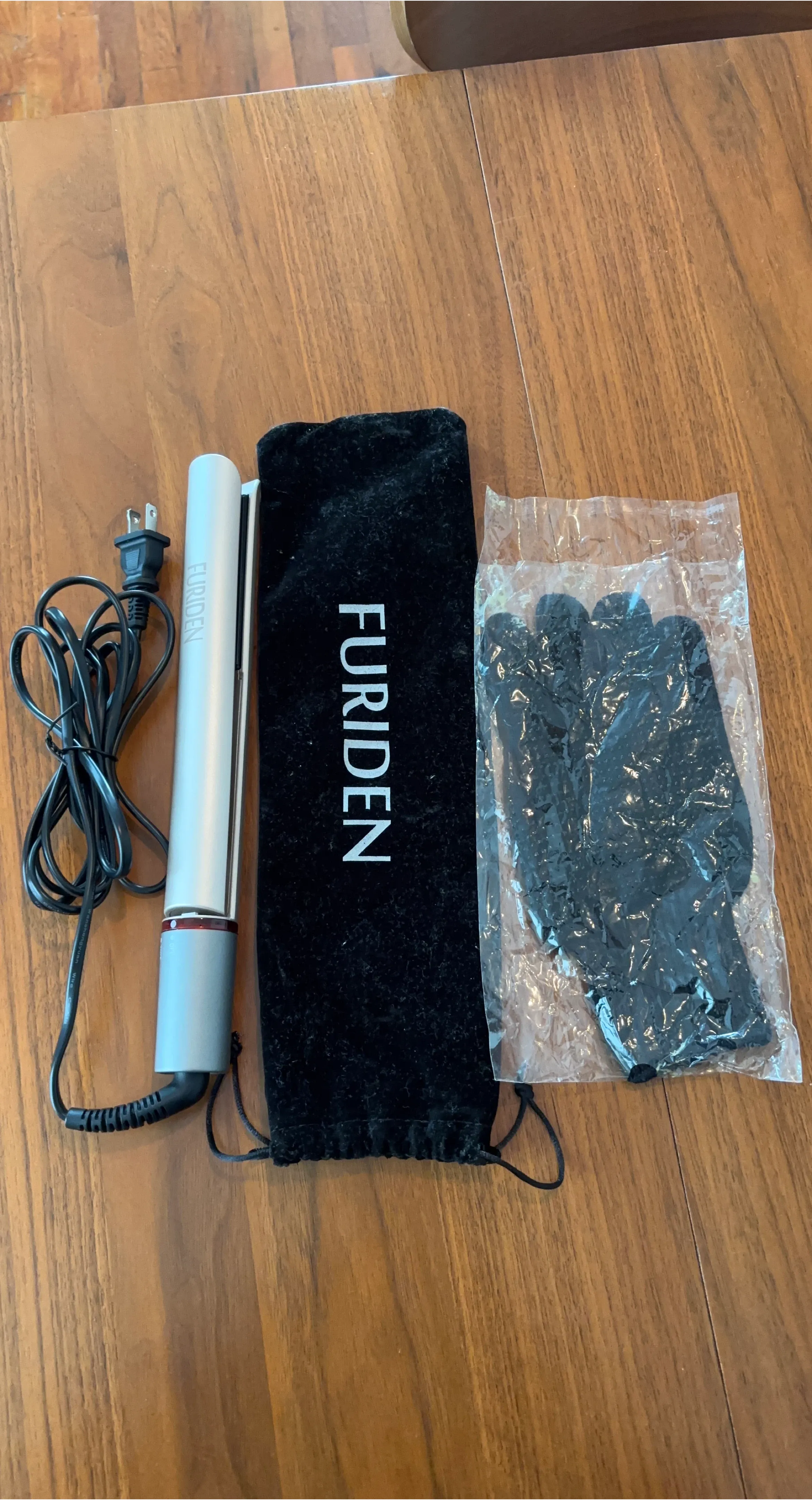 This is a FURIDEN professional hair straightener. It comes with a heat-resistant glove and a storage pouch. Great for styling on the go!