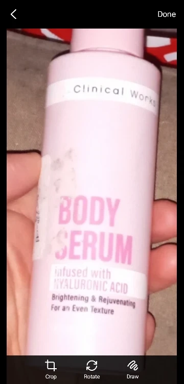 This is the Clinical Works Body Serum infused with hyaluronic acid. It's brightening and rejuvenating for an even texture. For skin that needs a little extra hydration and glow!
