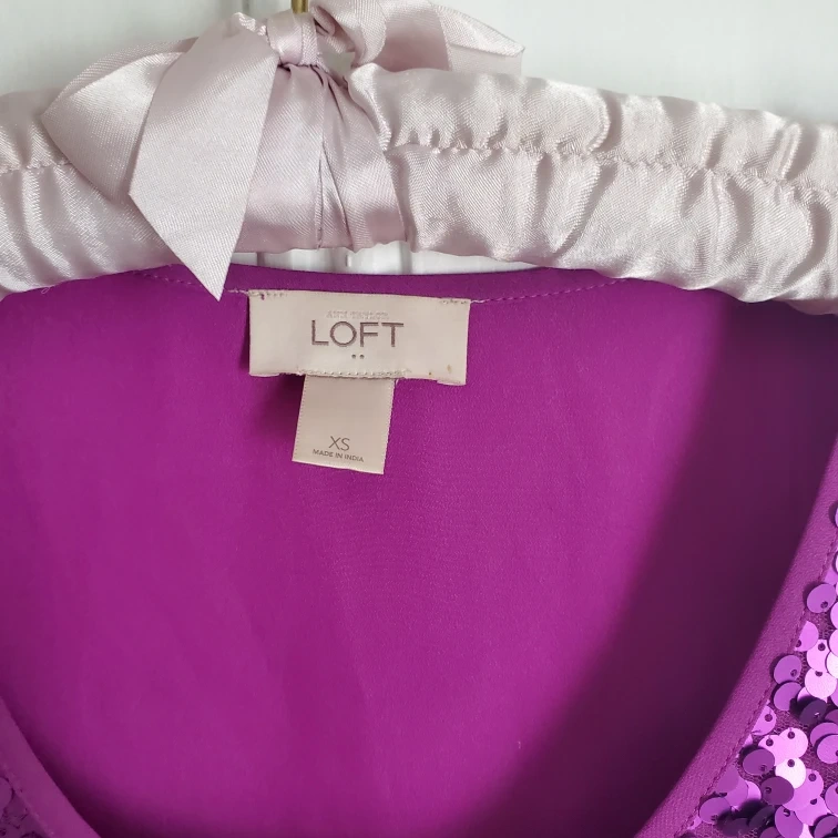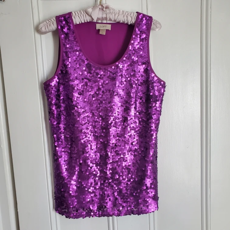 LOFT Bright Purple Sequined Tank. Sparkly sequins in the front. Light chiffon material on the back. Oversized fit.