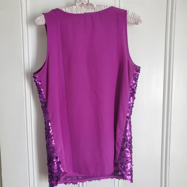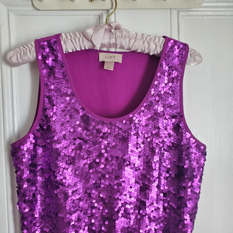LOFT Bright Purple Sequined Tank. Sparkly sequins in the front. Light chiffon material on the back. Oversized fit.