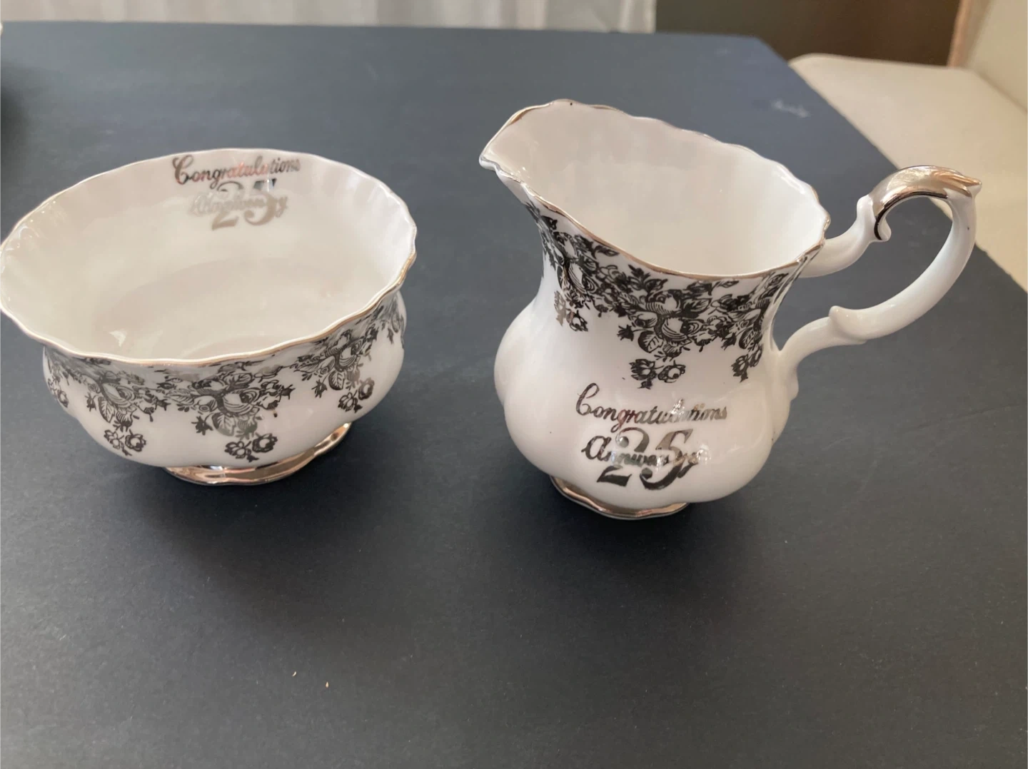 Royal Albert, bone china made in England. Wedding anniversary . Silver .