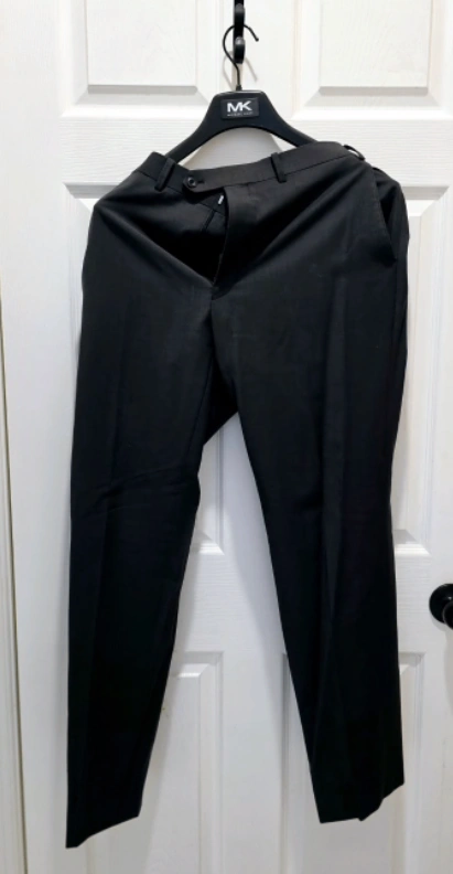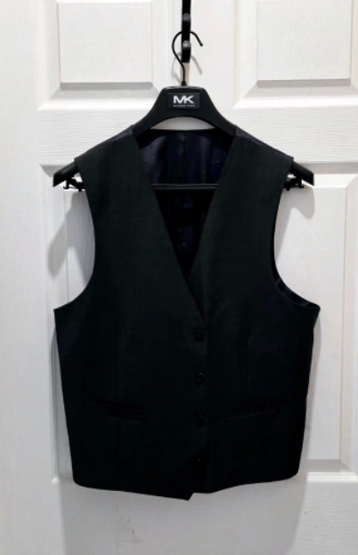 Includes blazer (44L), matching vest, dress pants, and 2 dress ties.