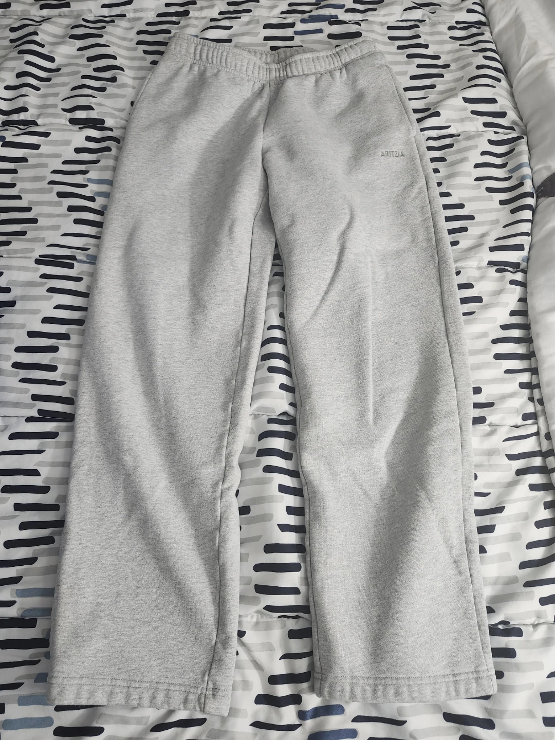 Light grey Aritzia sweatpants. Made with sweatfleece fabric. Mega fit style.