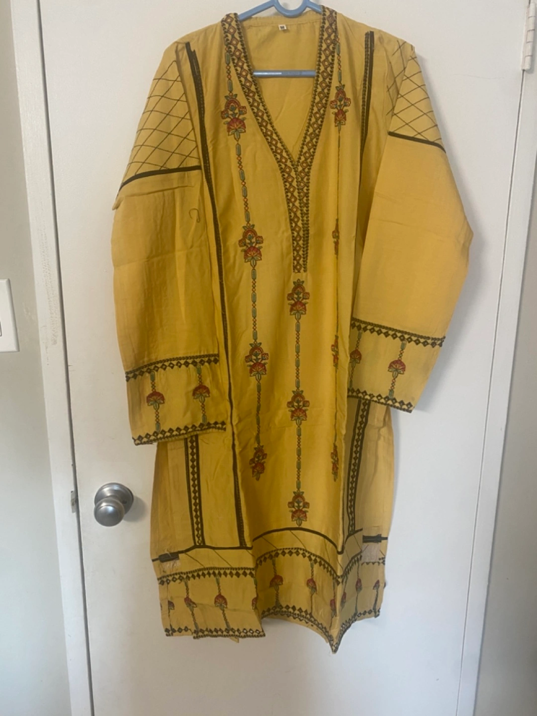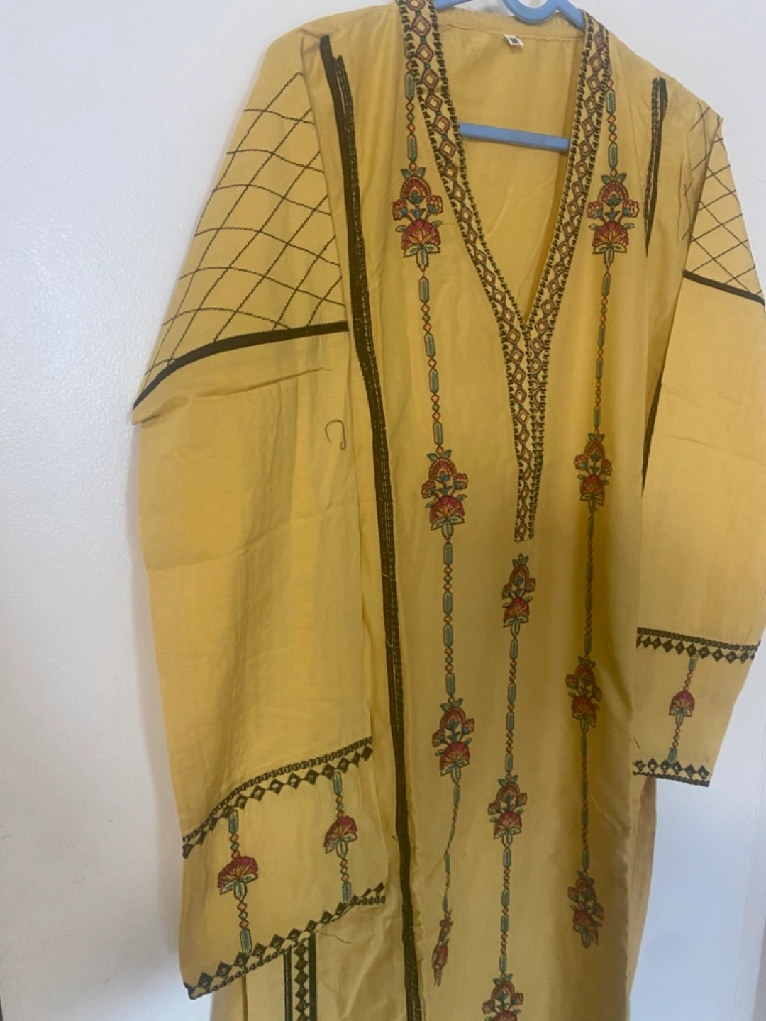 Selling a beautiful embroidered yellow kurta pant suit. This outfit features a lovely design and comfortable fit. Perfect for any occasion!