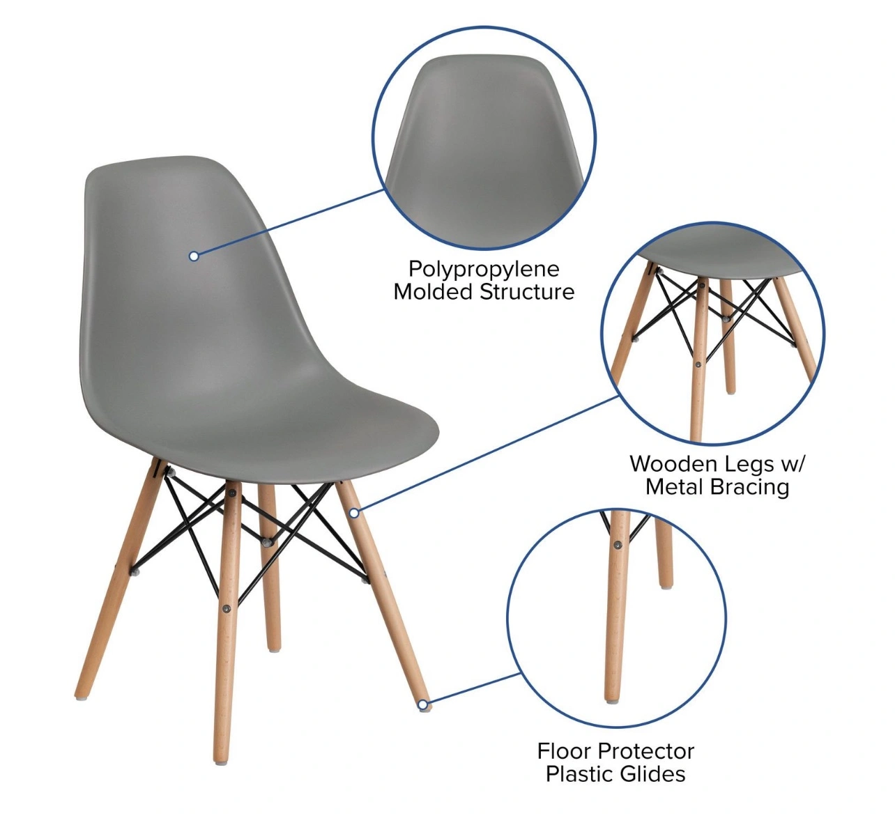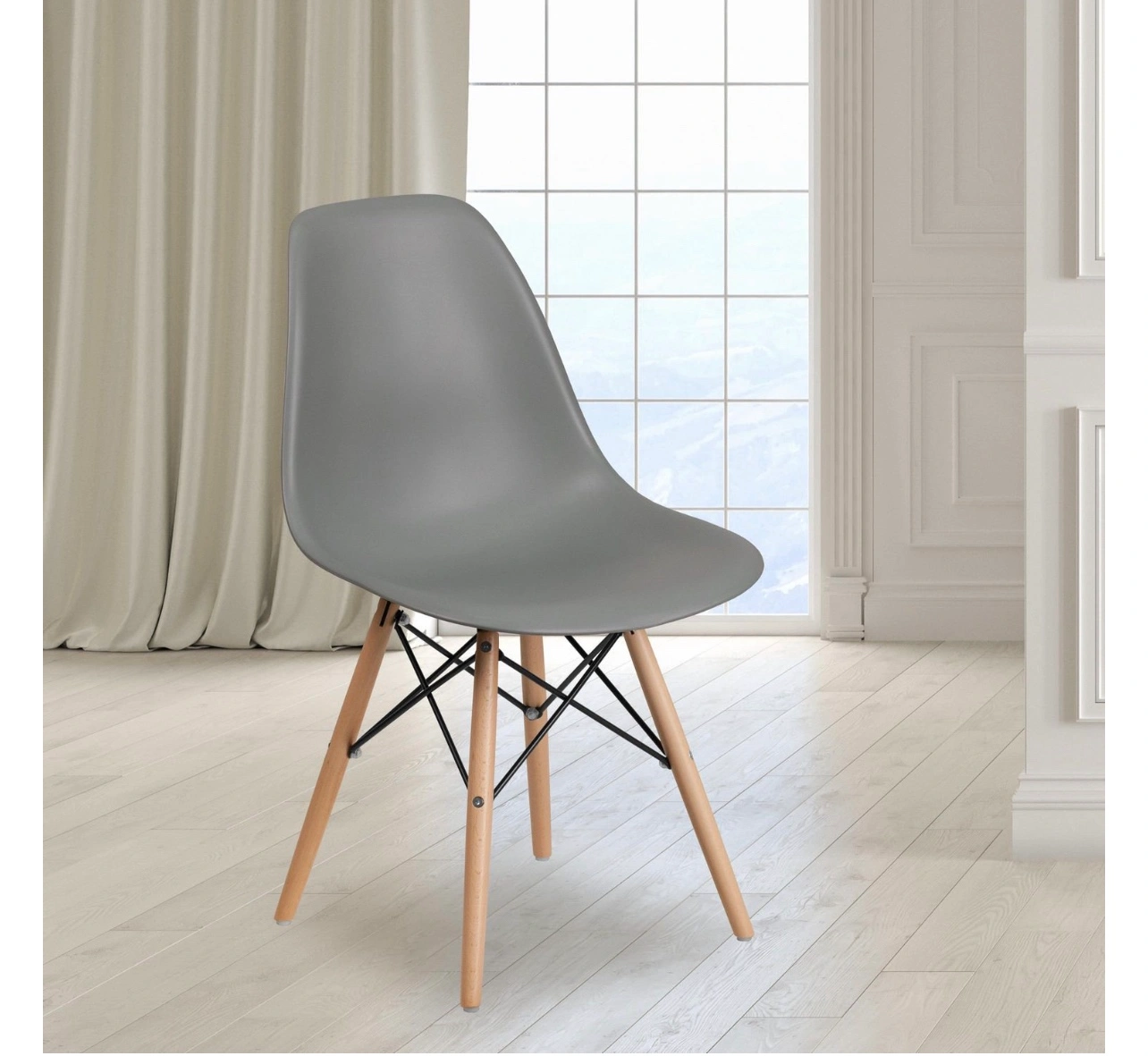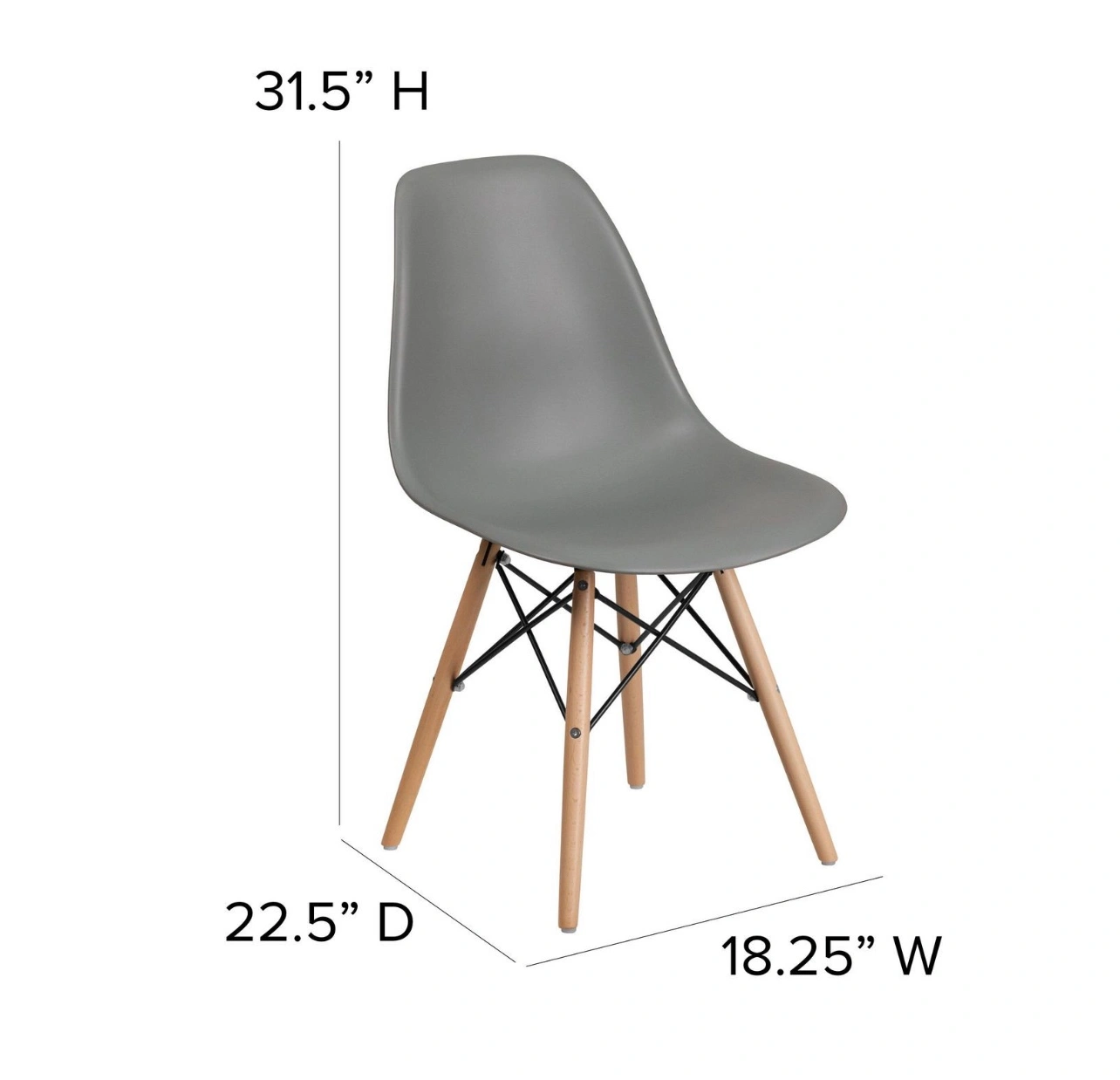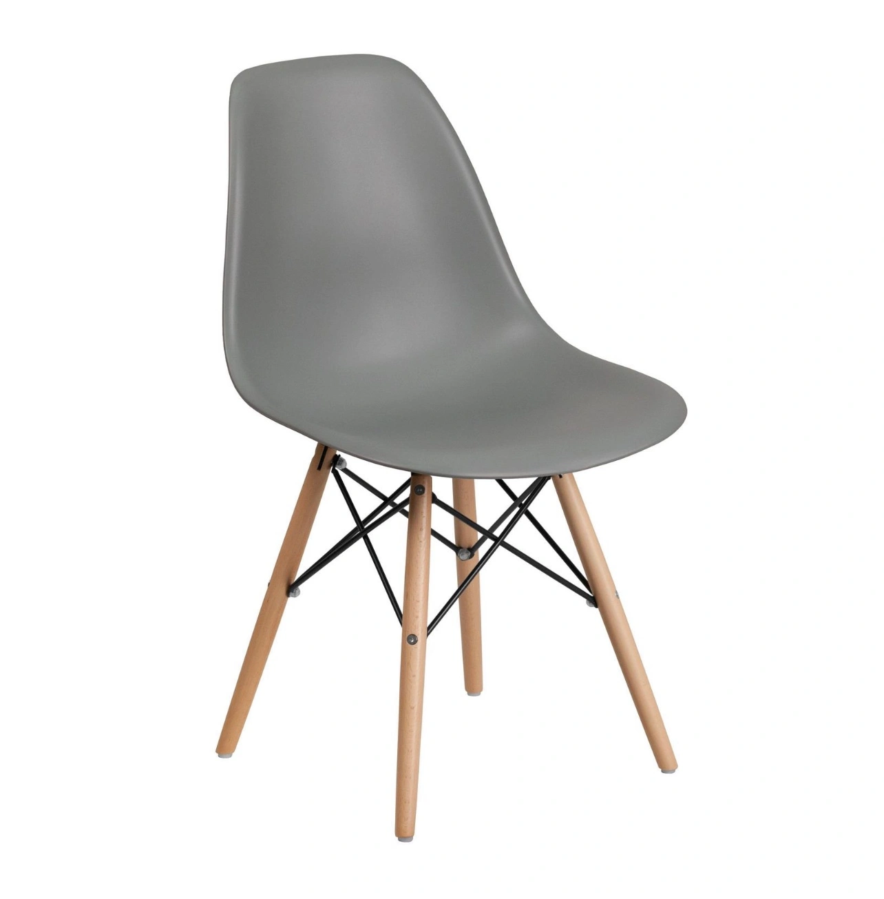This easily recognizable designed chair will make a great accent or dining chair. The smooth contours of the chair conform to your body allowing you to sit comfortably. The durable matte plastic molded chair and geometric wooden legs provide an artistic appeal.
