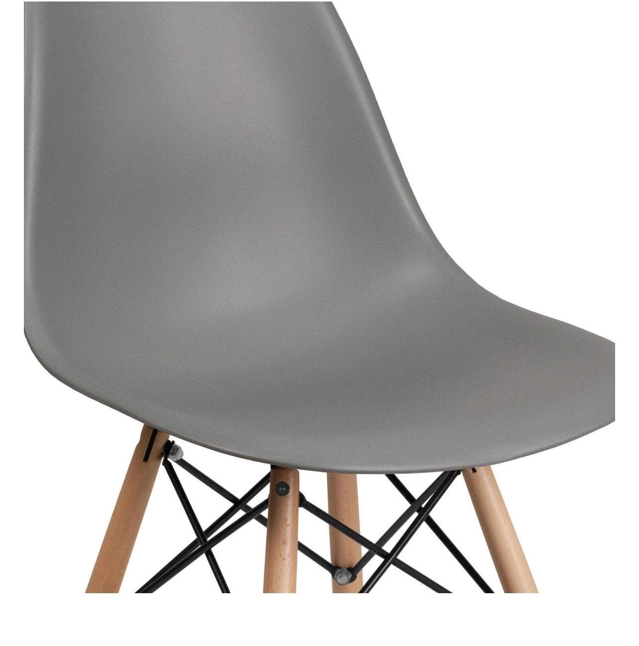 This easily recognizable designed chair will make a great accent or dining chair. The smooth contours of the chair conform to your body allowing you to sit comfortably. The durable matte plastic molded chair and geometric wooden legs provide an artistic appeal.