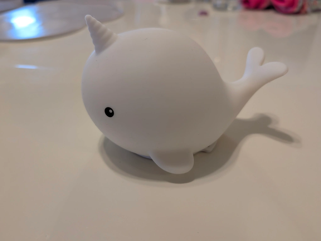 This is a cute Globe Electric LED Narwhal rechargeable silicone clip-on kids night light! It's in great condition and ready to light up a little one's room. It measures 2.76" in height and 3.44" in width. Originally bought for $14.94