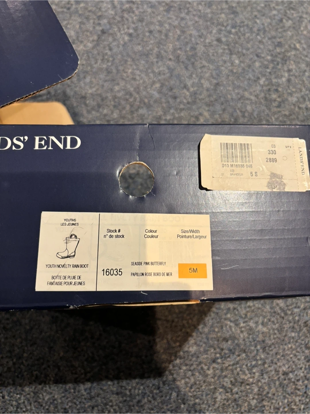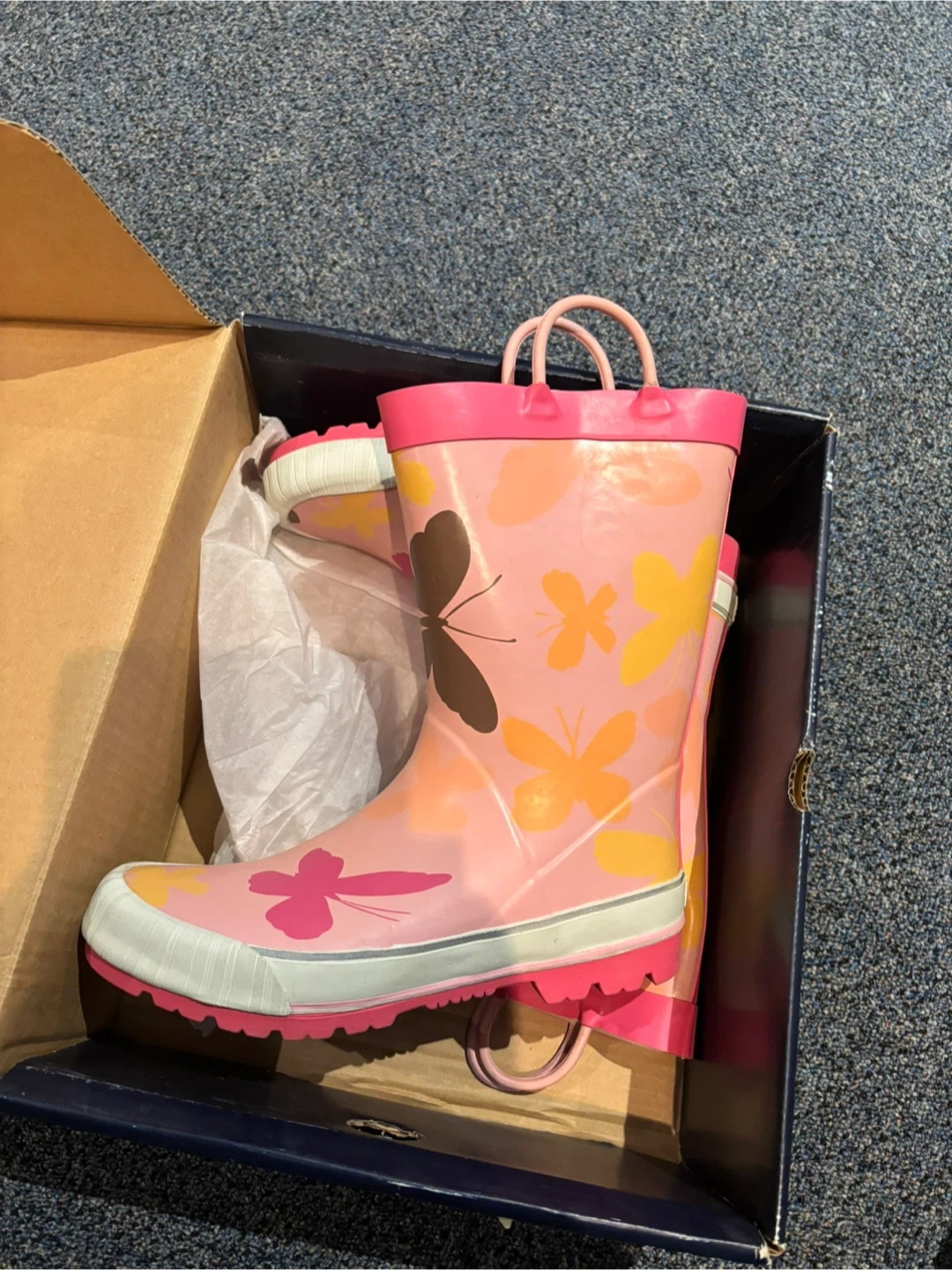 Buy & SellLands' End Youth Butterfly Rain Boots Size 5MLands' End Youth Butterfly Rain Boots Size 5M$20These are Lands' End youth novelty rain boots. They're pink with a butterfly and floral design. The size is 5M.ConditionNewWHERE TO MEETWincottView MapSELLERverifiedJanetPrincess600 reviews0 chats·0 favorites·7 viewsSEND CHAT TO SELLERHi Janet! I’m interested in your listing.Hi Janet! I’m interested in your listing.Get the Karrot app to chatSign In to chat