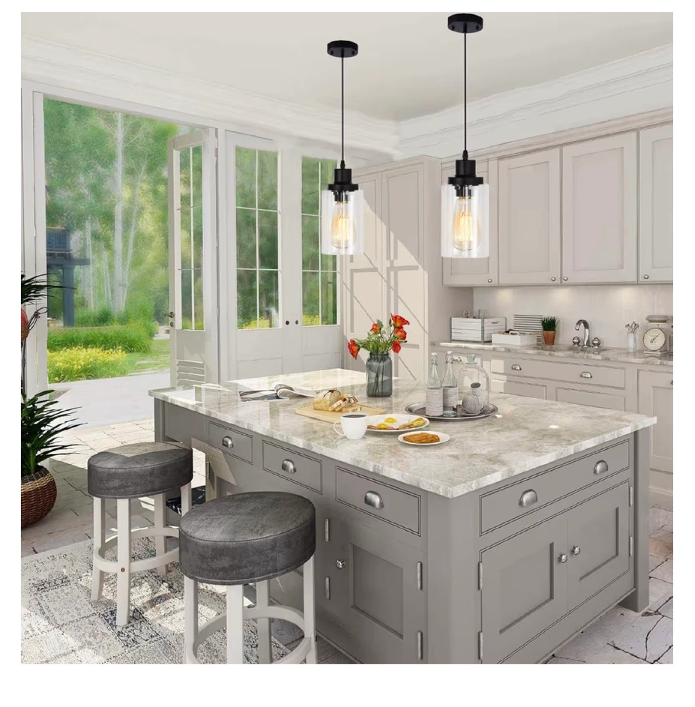 2 Pack Glass Shade Pendant Light Fixture PL2