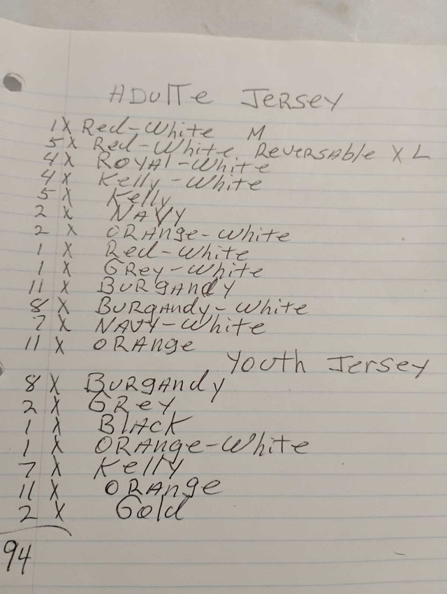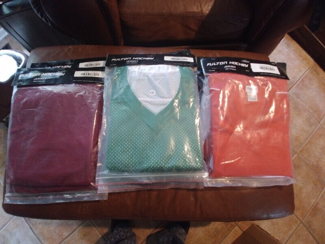 Up for sale we have some Brand New Fulton Adult Practice Jersey in different color asking $ 15 EACH up for sale we have some Brand New Fulton Reversible Youth and Adult Practice Jersey in different color 94 OF THEM asking $ 15 EACH OR $5 EACH IF YOU TAKE THEM ALL pick up ON BEAVERBROOK LANE IN KANATA