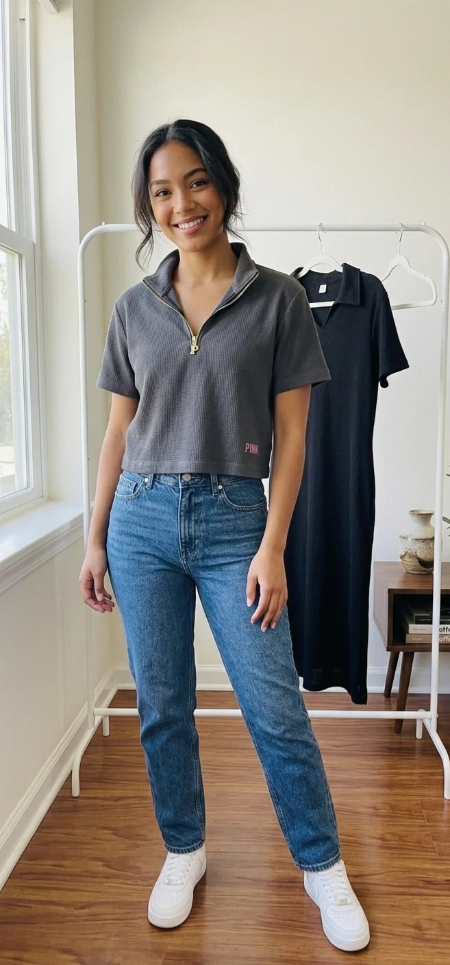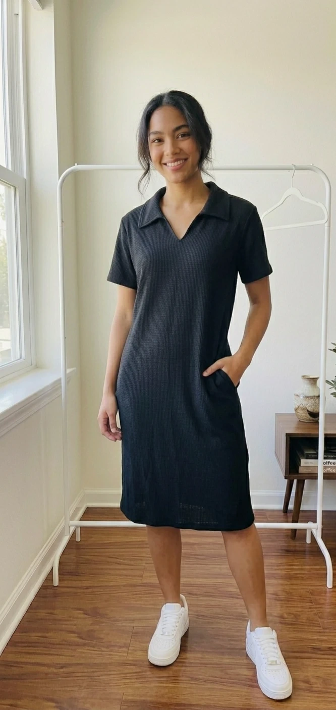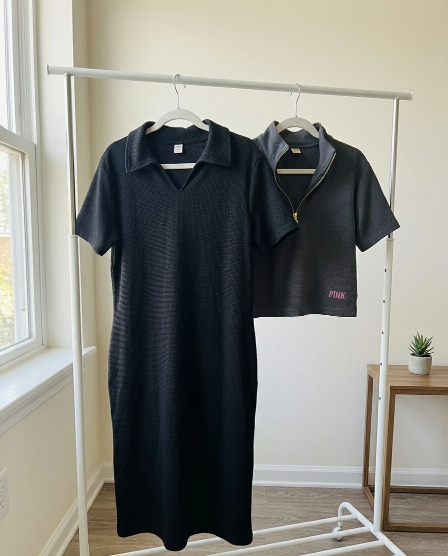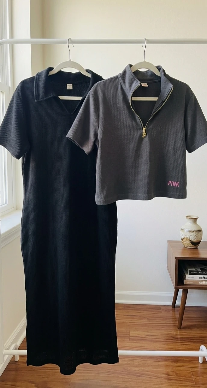 π Waffle Knit Crop Top + T-Shirt Dress with Pockets
