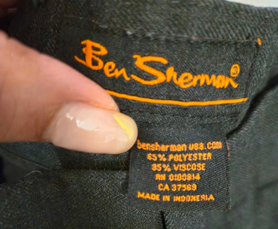 Two pairs of Ben Sherman men’s dress pants in excellent condition. Flat front tailored style with belt loops, two front pockets, and two rear welt pockets with embroidered Ben Sherman logo. Comfortable, wrinkle-resistant fabric.