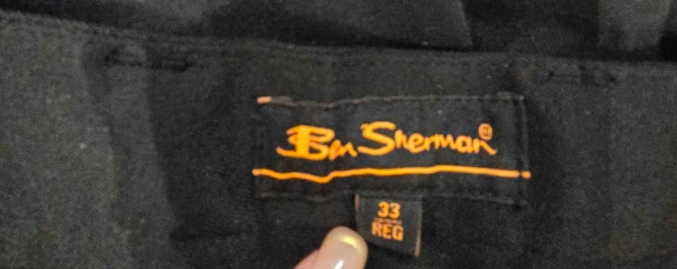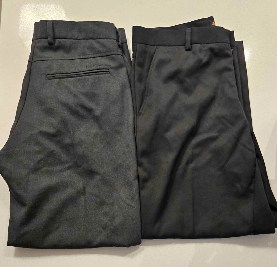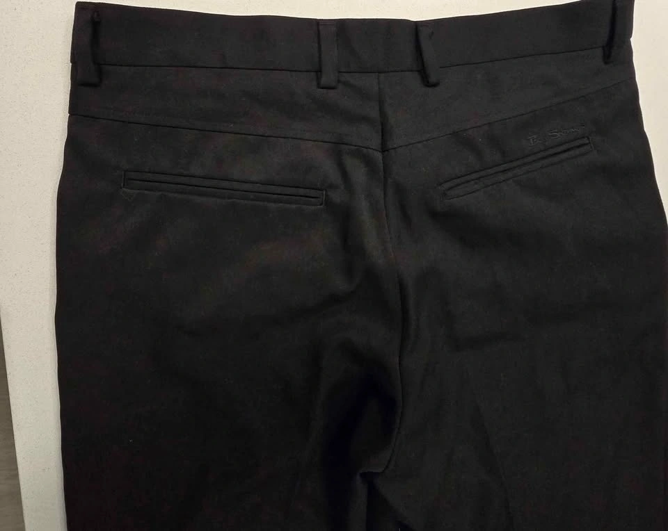 Two pairs of Ben Sherman men’s dress pants in excellent condition. Flat front tailored style with belt loops, two front pockets, and two rear welt pockets with embroidered Ben Sherman logo. Comfortable, wrinkle-resistant fabric.