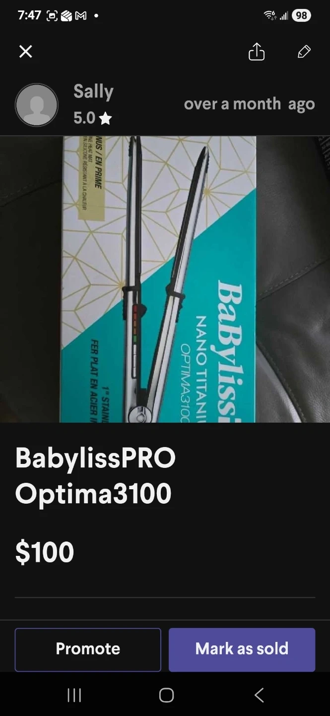 BaBylissPRO Optima3100 Nano Titanium flat iron. It's a 1" stainless steel hair straightener. This tool is designed for professional use.