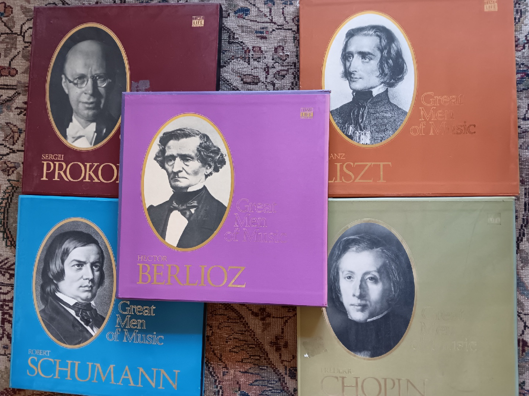 Selling a collection of Time Life records titled 'Great Men of Music'! Includes music on Sergei Prokofiev, Franz Liszt, Hector Berlioz, Robert Schumann, and Frederic Chopin.