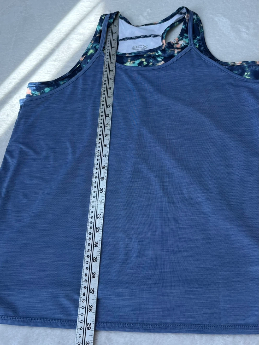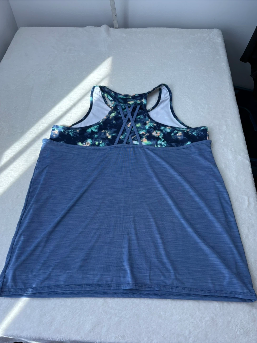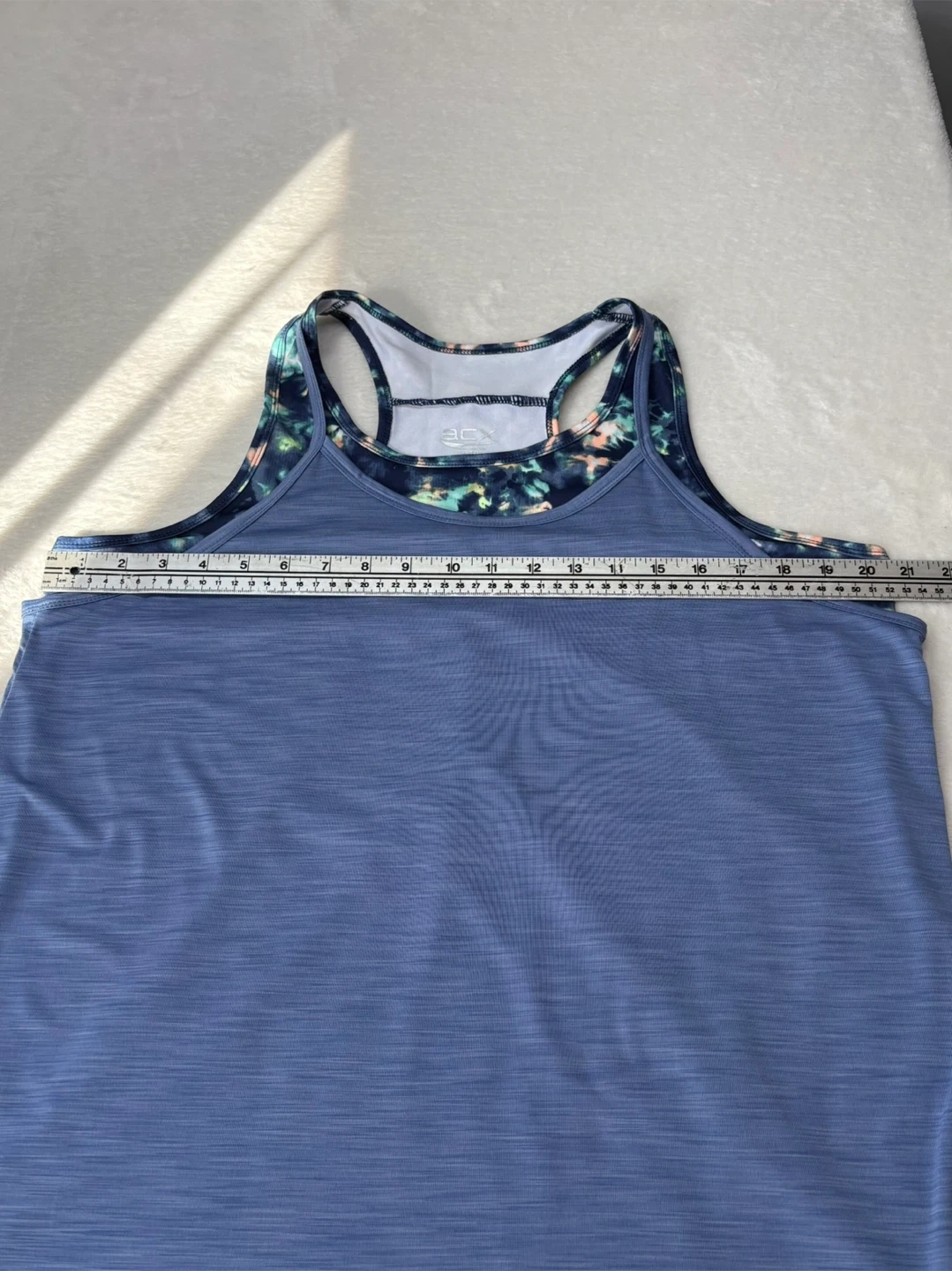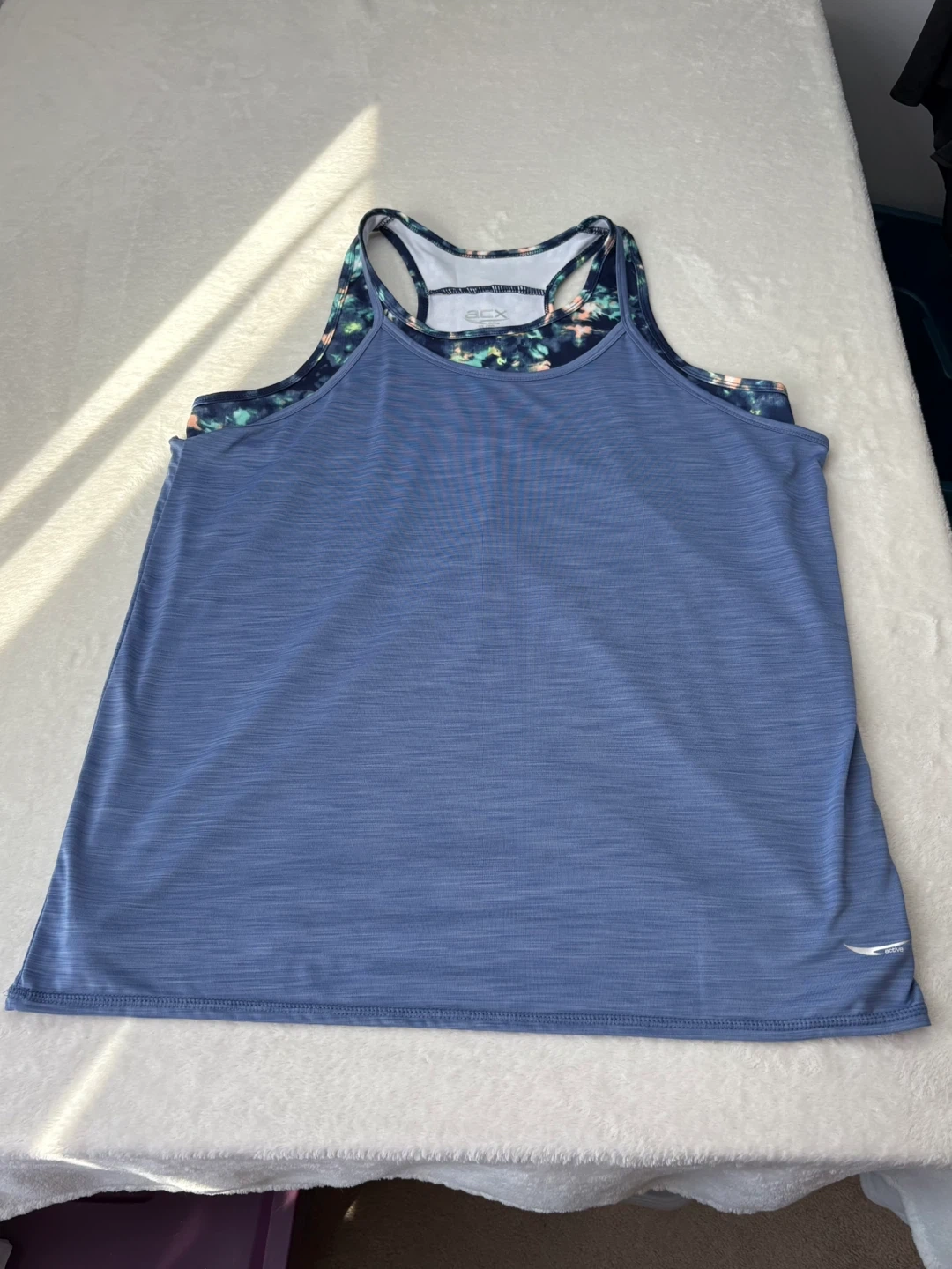 ACX, Active, Workout, Tank Top, Layered, 2 in 1, XL, Blue, Tie Dye, Racerback, Athletic, Gym, Yoga, Fitness, Breathable, Heathered, Double
