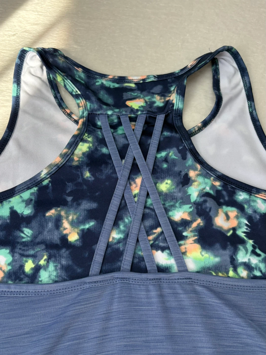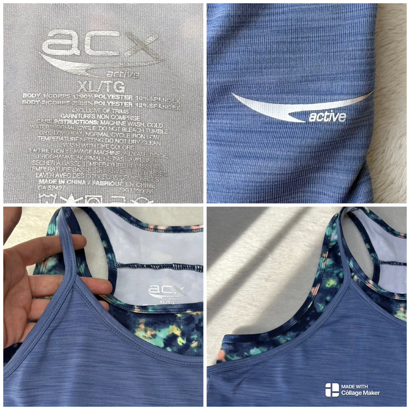 ACX, Active, Workout, Tank Top, Layered, 2 in 1, XL, Blue, Tie Dye, Racerback, Athletic, Gym, Yoga, Fitness, Breathable, Heathered, Double