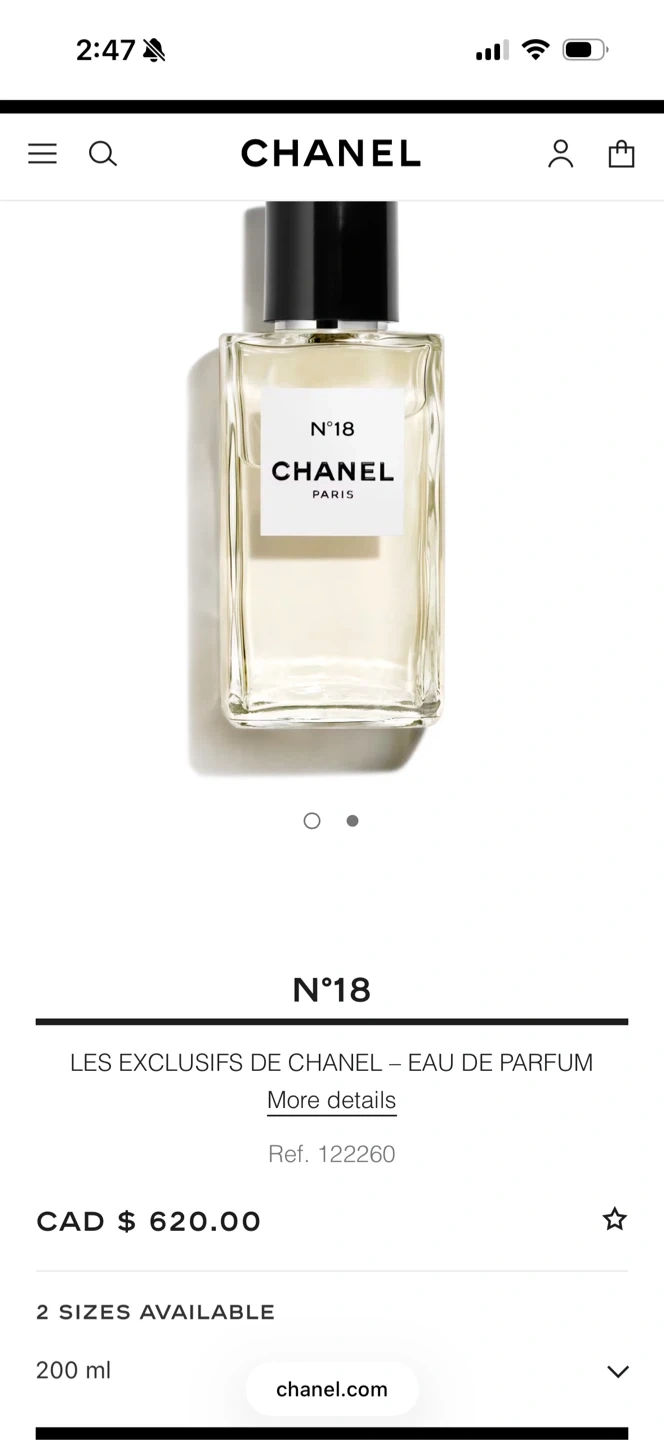 This is a bottle of CHANEL N°18 Eau de Parfum. It's the Les Exclusifs de CHANEL collection. The bottle contains 200 ml of fragrance. It’s new and comes with the original box. It was gifted but I don’t wear perfume. Authentic. Retails for $620 + tax. Open to reasonable offers. Open to trades.