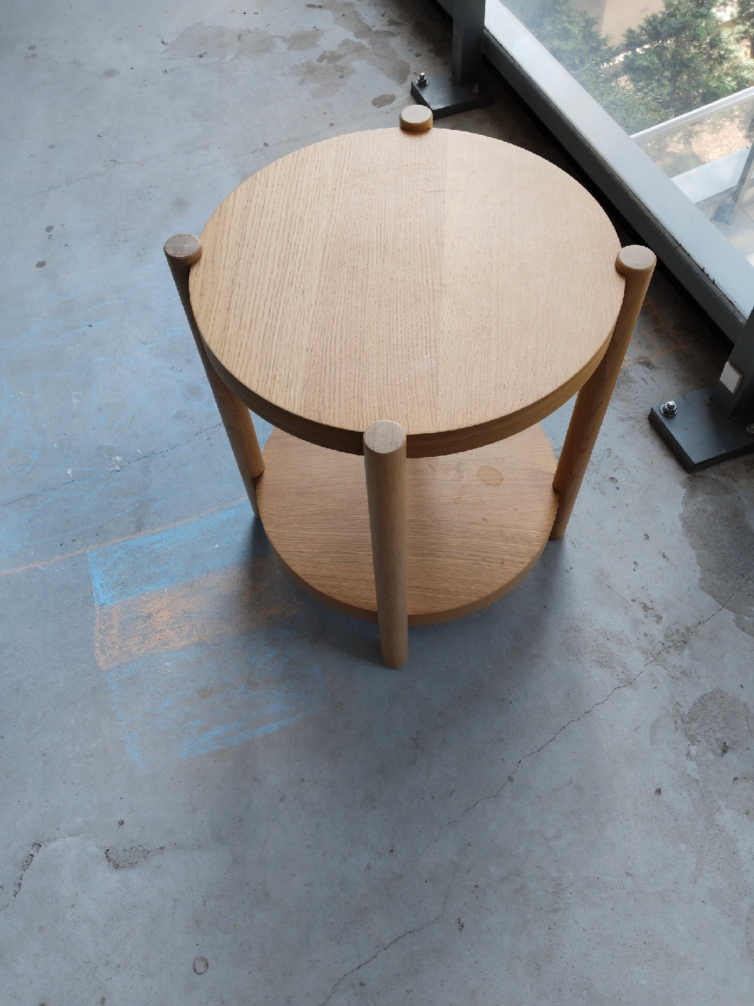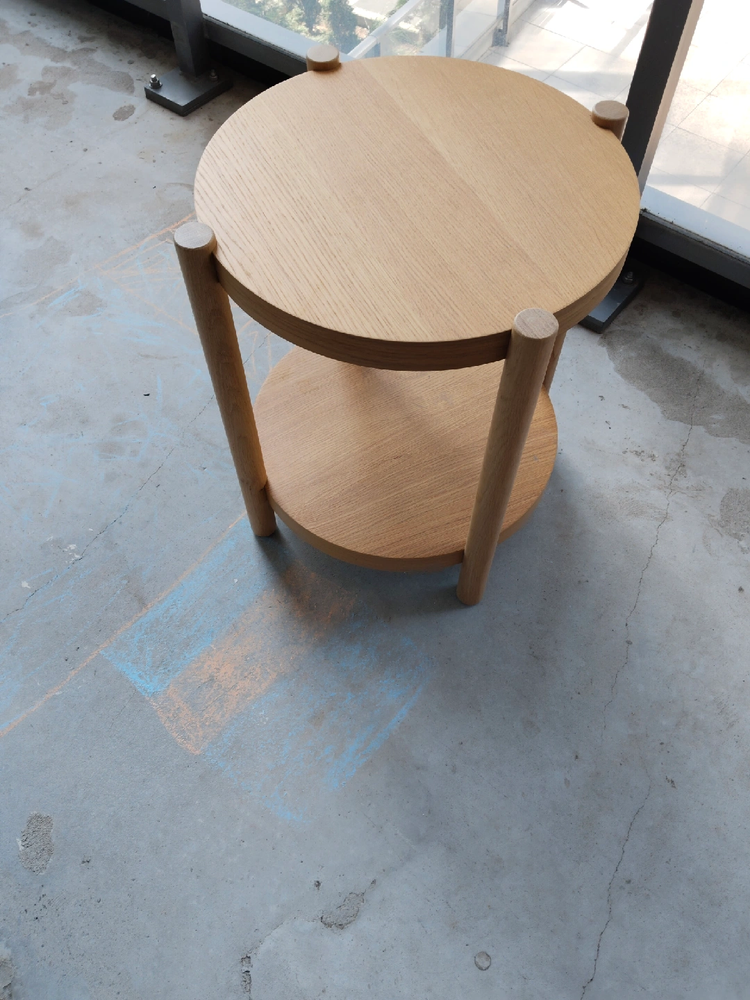 Selling a cute round wooden center or side table! It has a second tier for extra storage or display. Perfect for a small space or as a bedside table. It's in great condition