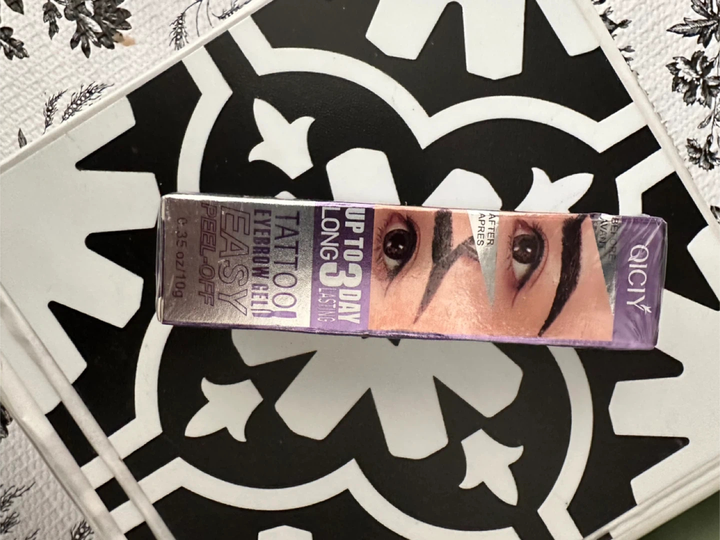 This QICiY Tattoo Eyebrow Gel offers a peel-off application. It's designed for long-lasting wear, up to 3 days. Includes 0.35 oz or 10g of product.